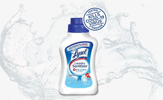 Our clothes are in constant contact with bacteria throughout our day-to-day activities, for example through contact with contaminated surfaces, other people and our own bodies. Bacteria can spread from one fabric to another in the laundry basket, from the washing-machine drum to the next load. Some these bacteria can survive a wash cycle and can cause potential infection risk with pathogenic bacteria. When it comes to certain laundry loads such as children's clothes or sportswear, you want your detergent to eliminate bacteria that can cause illnesses and create lingering bad smells. But detergents alone don't actually kill all bacteria. Introducing Lysol Laundry Sanitizer, an additive specially designed to kill 99.9% of bacteria left behind. Simply add Lysol Laundry Sanitizer to your rinse cycle. It does not contain any bleach and even works in cold water so is safe to use on most fabrics including whites, colors and darks.