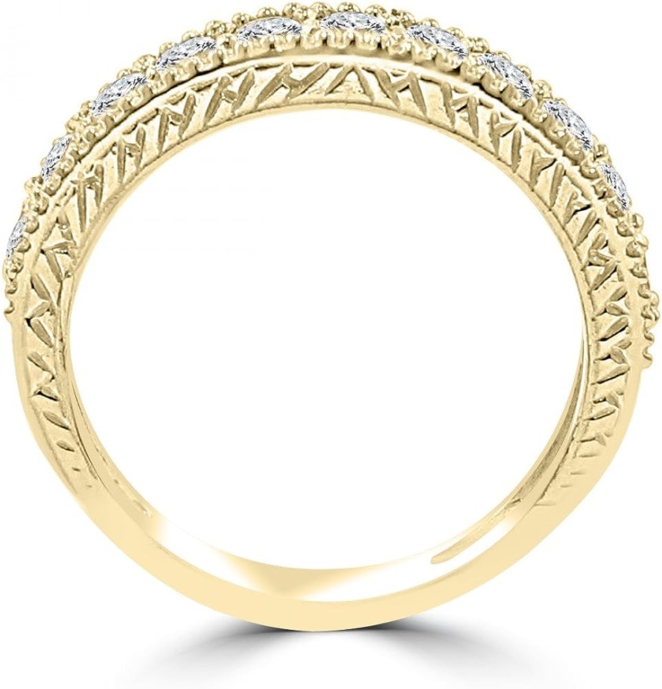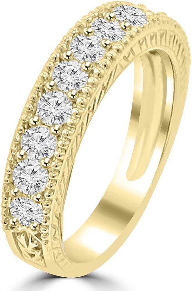 Madina Jewelry 1.10 ct Ladies Round Cut Diamond Wedding Band Ring with Millgrain Edge in 18 kt Yellow Gold