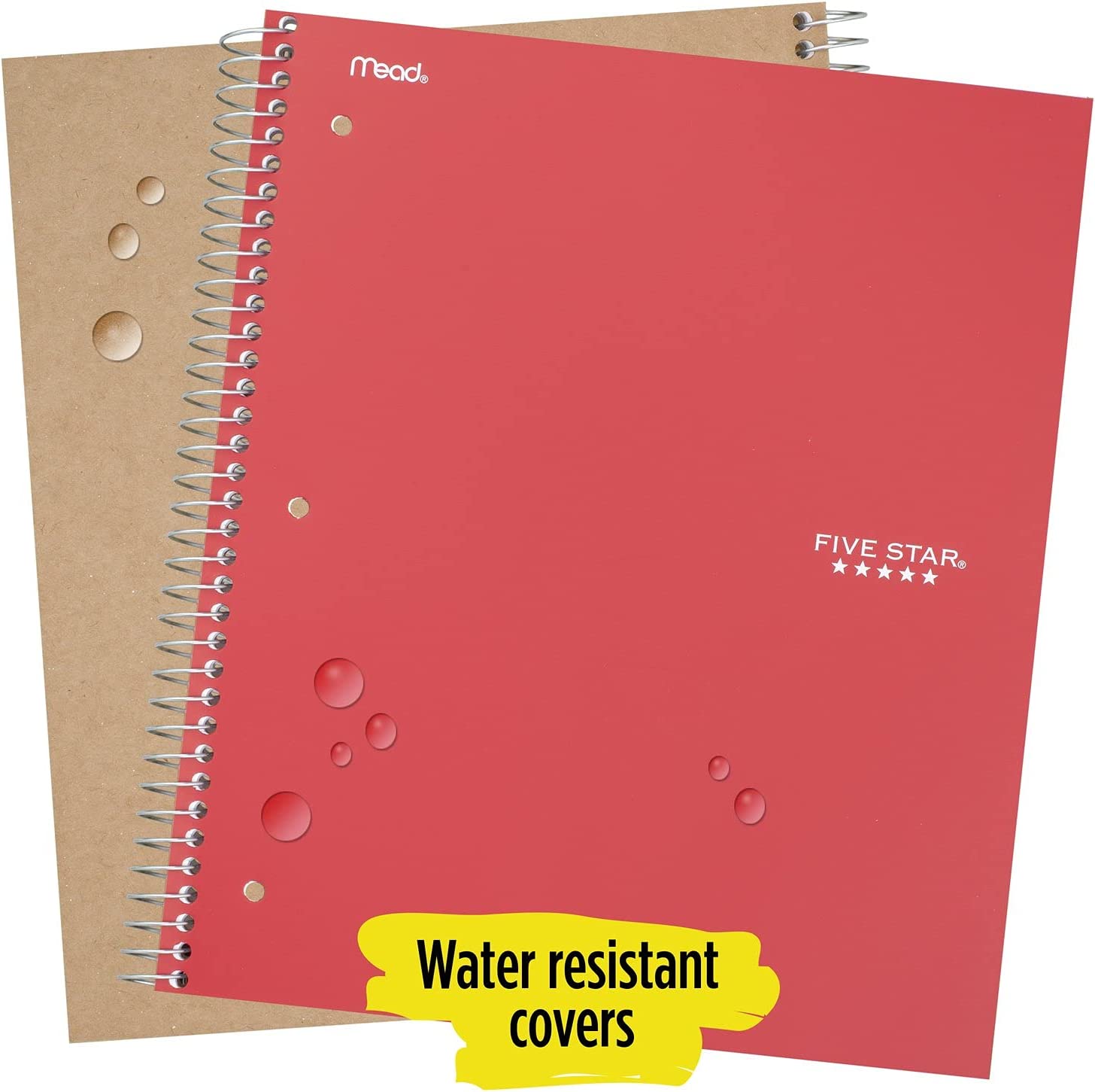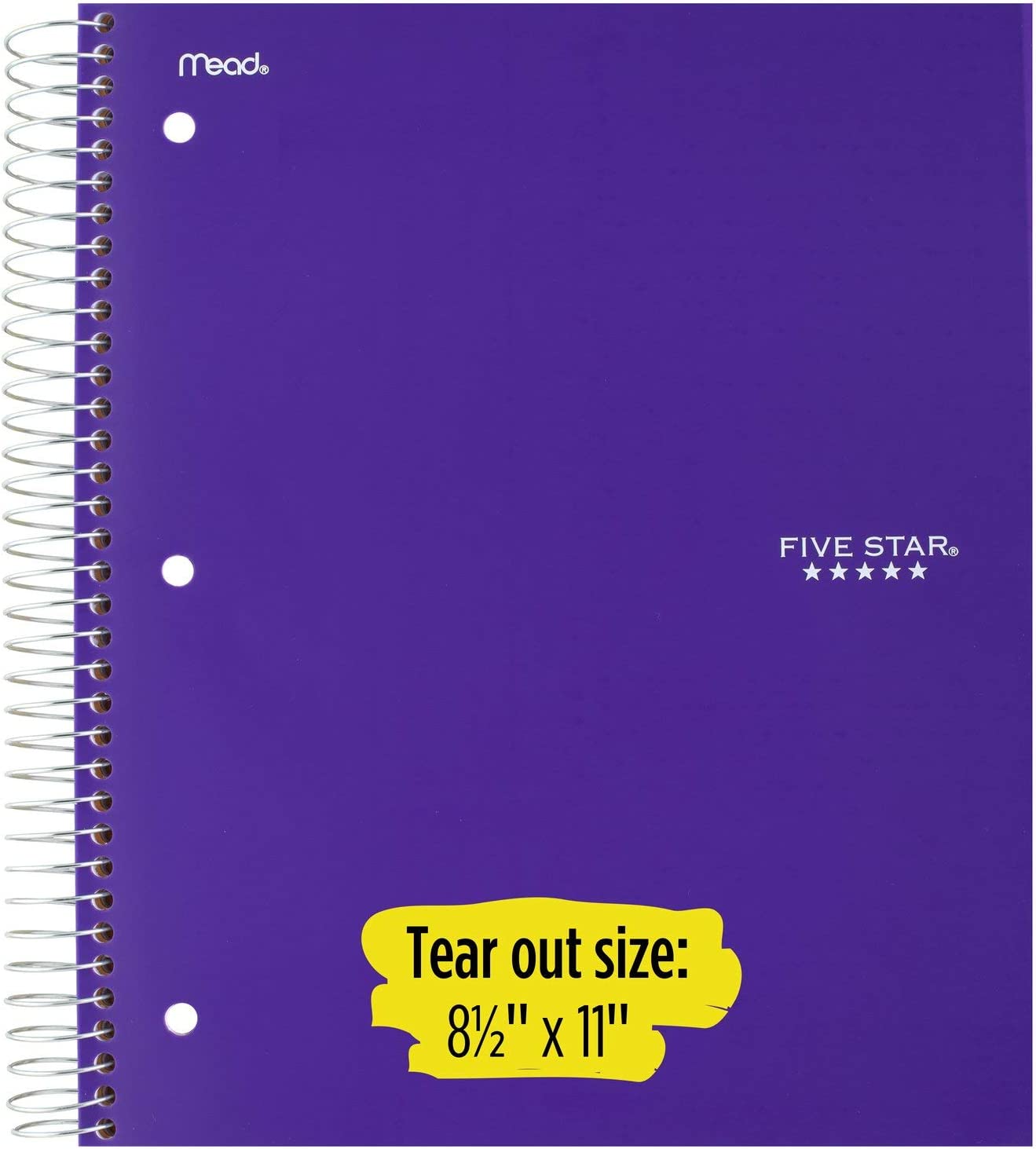 LASTS ALL YEAR. GUARANTEED!* This Five Star 5 Subject Notebook is full of features. Compatible with the Five Star study app, you can easily scan, study and organize notes on your phone! Create instant digital flashcards and sync notes to Google Drive and access them anywhere from any device. 5 subject notebook has 200 double-sided, college ruled sheets, which fight ink bleed. Sheets measure 8-1/2" x 11" and are perforated for easy tear out. Tough pockets help prevent tears and hold 8-1/2" x 11" loose sheets and handouts. Covers are water resistant to protect your notes and our Spiral Lock wire helps prevent snags on clothes and backpacks. Made with SFI certified paper. Notebook is recyclable – just remove the reinforcement tape on the pocket and recycle the rest! 6 pack available in Black, Fire Red, Pacific Blue, Forest Green, White and Amethyst Purple.