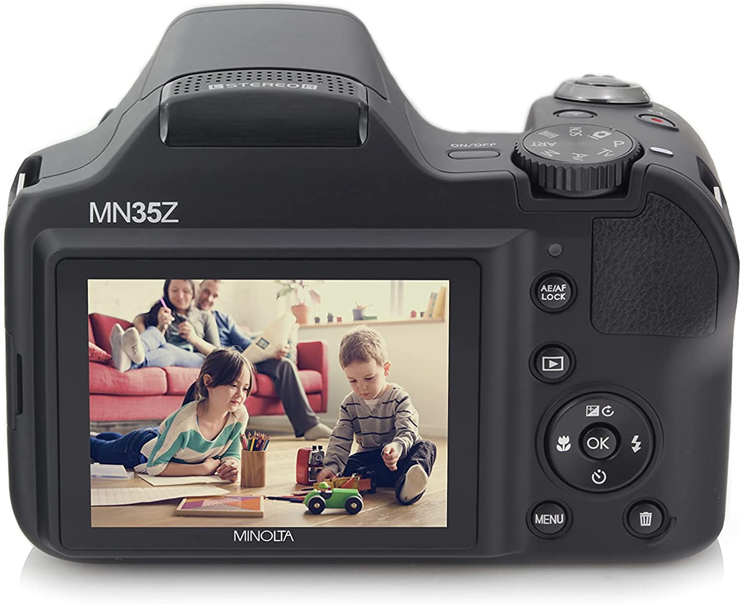 Minolta 20 Mega Pixels High Wi-Fi Digital Camera with 35x Optical Zoom, 1080p HD Video & 3" LCD, Black (MN35Z-BK)