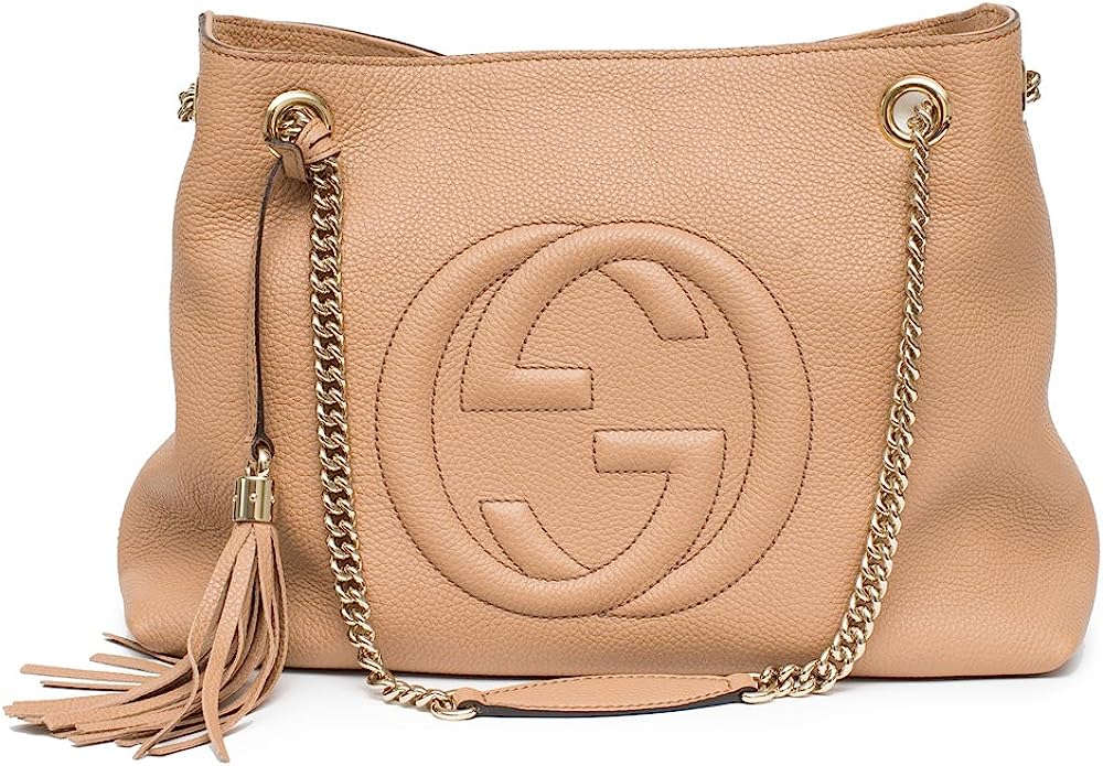 Gucci Camelia Camel Pebbled Leather Soho Shoulder Hand Bag Tassel