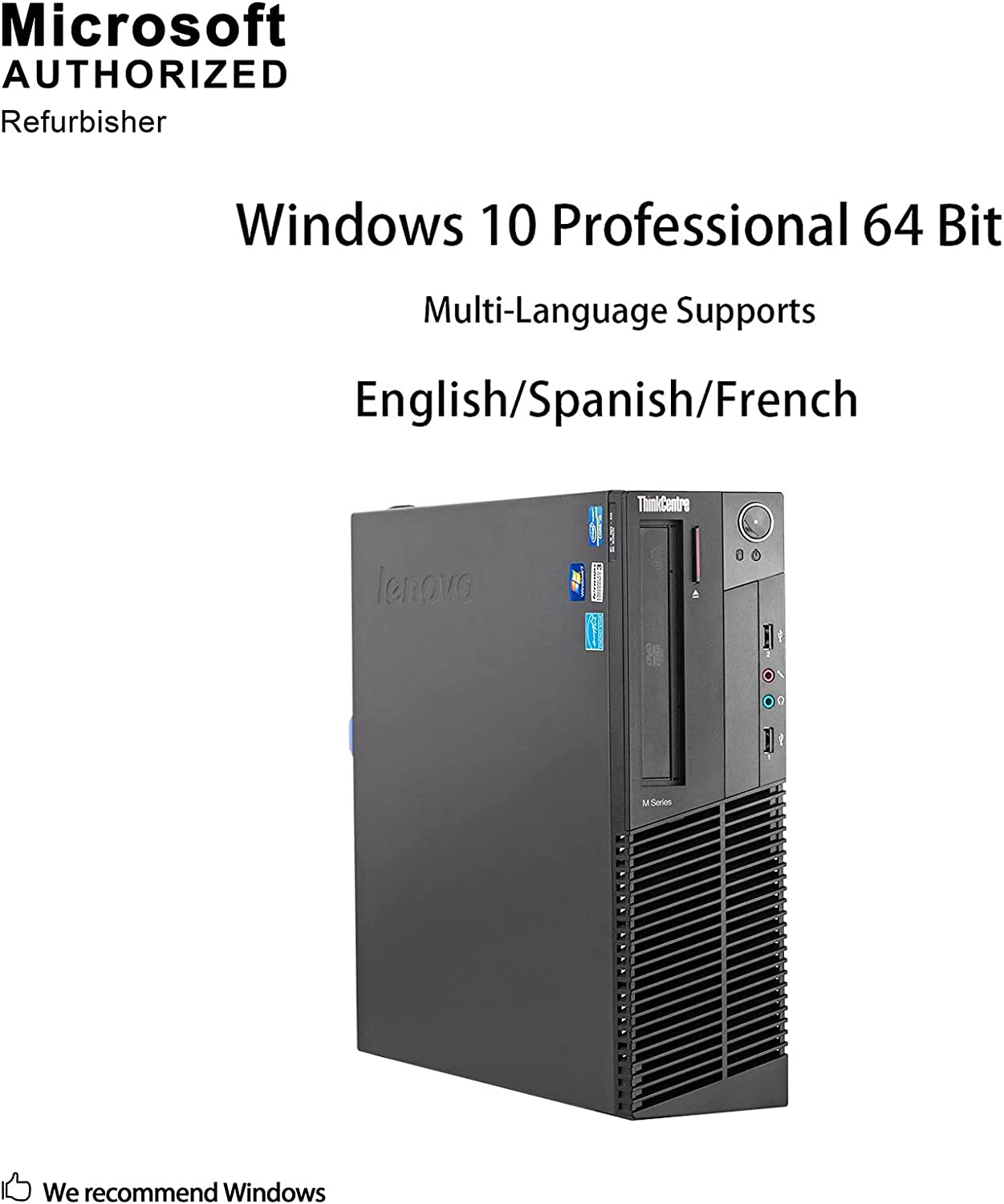 - Powered by the Intel Core i5-3470 3.6GHz Quad-Core processor for impressive performance results and energy efficiency.- 16GB memory - For multitasking power;- 2TB SATA hard drive has plenty of space to store your digital albums, music library and rich media files- Enhanced viewing with the integrated Intel HD 2500 graphics- DVD-RW drive - watch movies on your computer; read CDs and DVDs in multiple formats- Connect to a broadband modem or router with wired Ethernet- The front-panel's USB ports make it easy to transfer photos, music, and other files to and from your digital camera and other peripheral devices- Windows 10 Professional was designed for on-the-go working professionals. Connect to networks in three clicks, automatically find preferred network printers, and give professional presentations