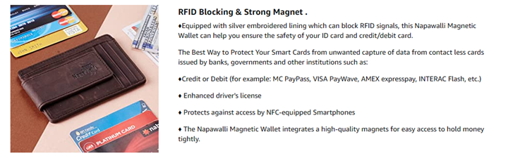 RFID Blocking Wallet: Tested for 13.56 MHz Frequency in which the credit cards operate.125 kHz Proximity Cards, RFID signals are NOT blocked.