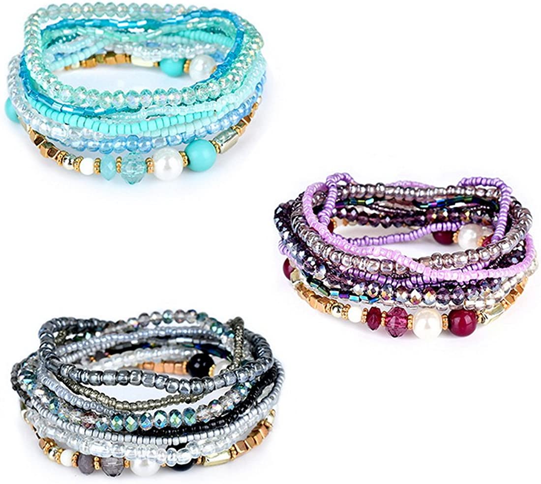 Stretch Bracelets:Elastic bohemian bracelets with multi strands
