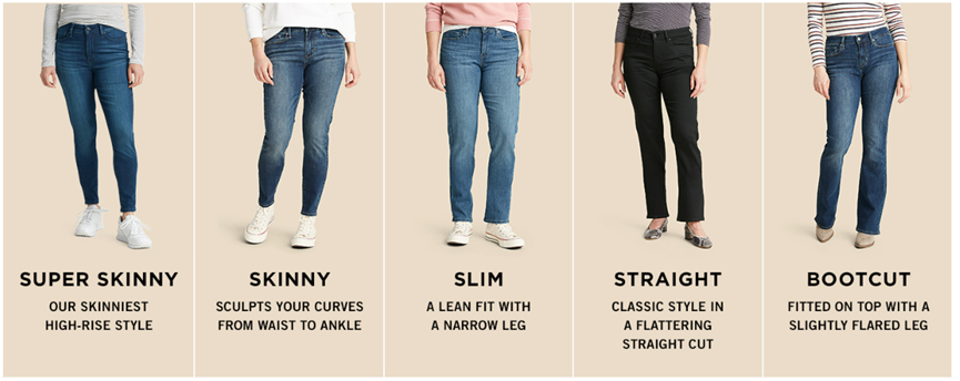 Slim through hip and thigh; boot cut opening