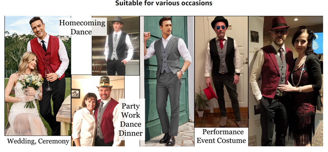 - FORMAL OR DAILY WEAR - Men's V-neck sleeveless layered suit vest can match with your necktie, bow-tie, leather shoes shirt, jacket, suit or tuxedo for a handsome and elegant look in formal occasions like Wedding Banquet, Halloween Party, Company Party or just match with slacks or jeans for a great look in daily life.