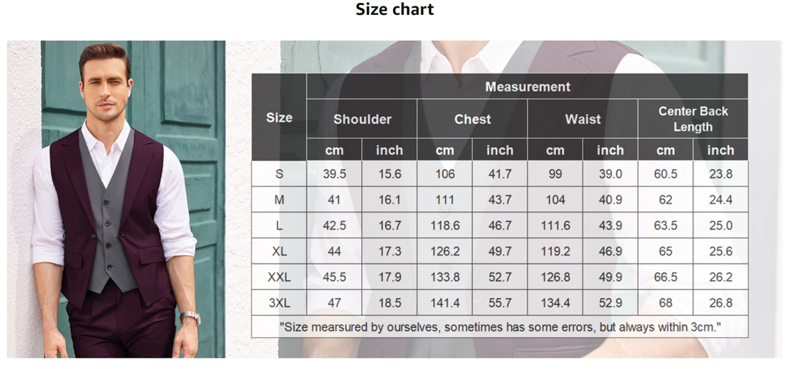 - WARM TIPS - Package Content: 1 x Men Vest. Hand Wash and dry cleaning Recommended. Please read the product size chart carefully before ordering to ensure accurate fitting, suggest choose 1 size UP if you want Loose.