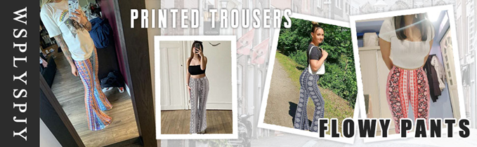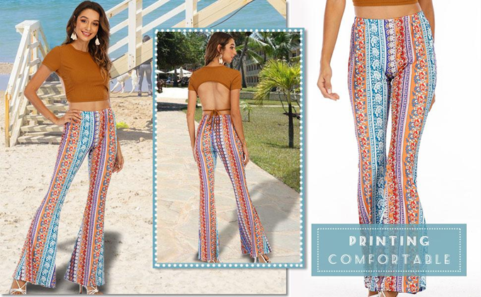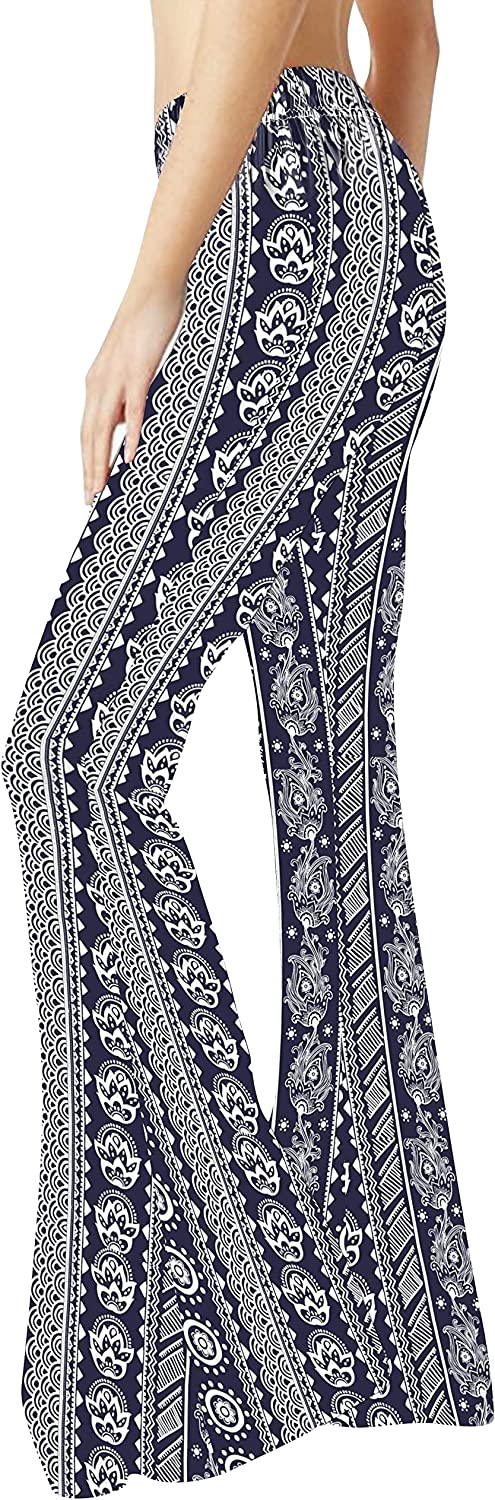 WSPLYSPJY Women's Print Stretch Bell Bottom Flare Palazzo Pants Trousers