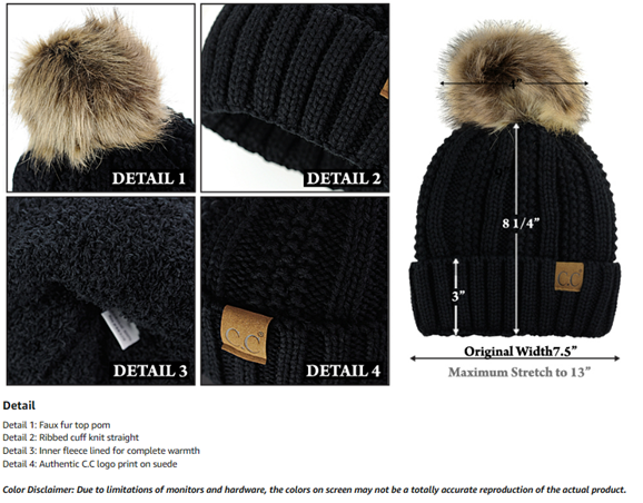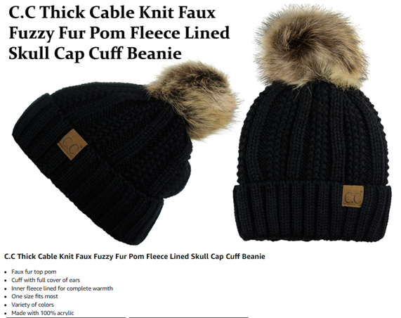 C.C Thick Cable Knit Faux Fuzzy Fur Pom Fleece Lined Skull Cap Cuff Beanie