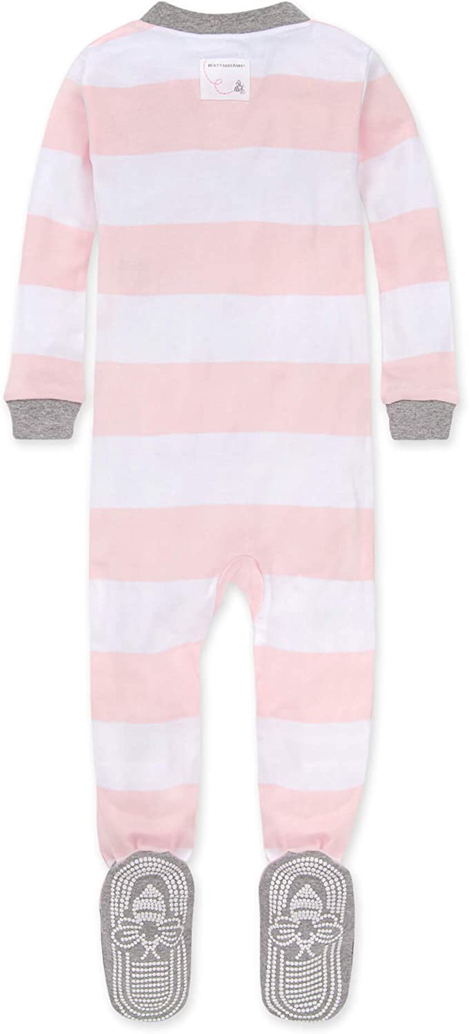 Burt's Bees Baby Sleepers - Snug fitting zip up footie pajamas are made with from The Purest Layer: 100% organic GOTS certified* cotton - breathable & great for sensitive skin. Sporty yet sweet, these footed PJs are snuggly soft and cuddle-ready. Designed with safety in mind, these sleepers feature elastic ankles to keep footies in place & non-slip "bee grips" for extra stability - great for little bees on the move! Diagonal zip front makes for easy diaper changes and snap tab at neck protects delicate skin. *GOTS Certificate Registration No: 831717