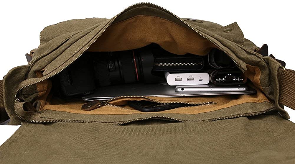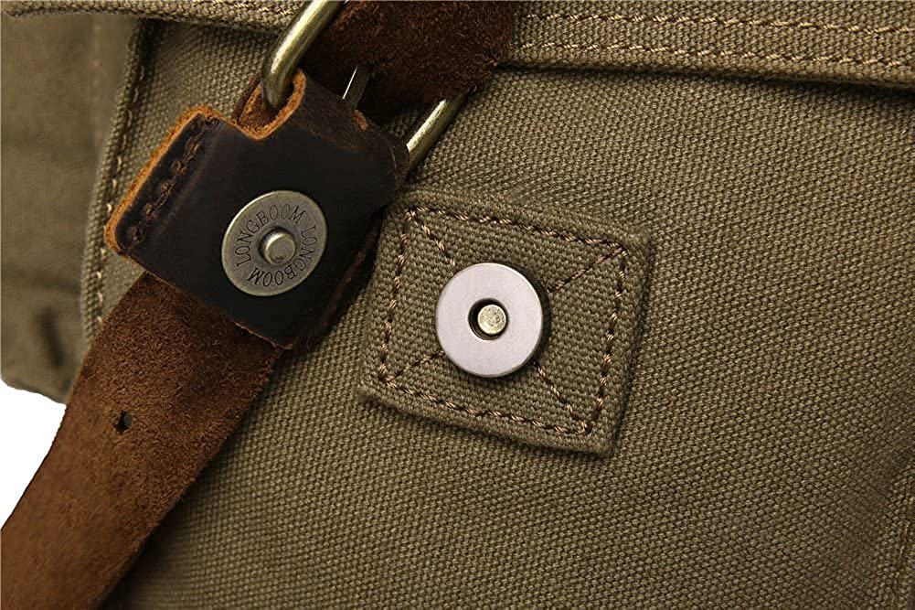 Sechunk Vintage Military Leather Canvas Laptop Bag Messenger Bags Medium