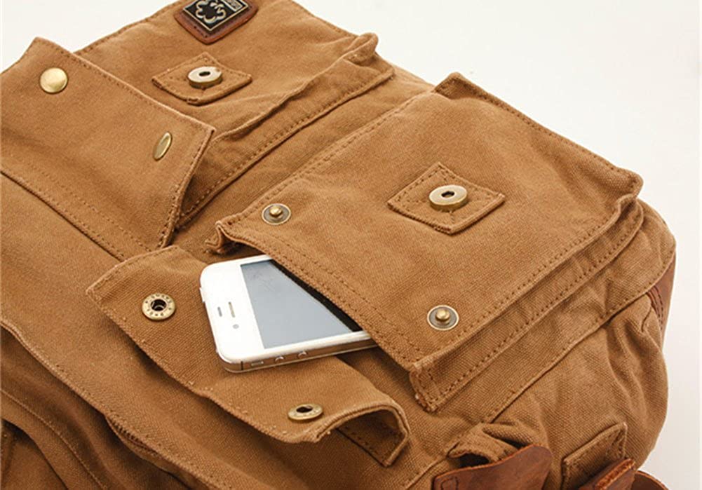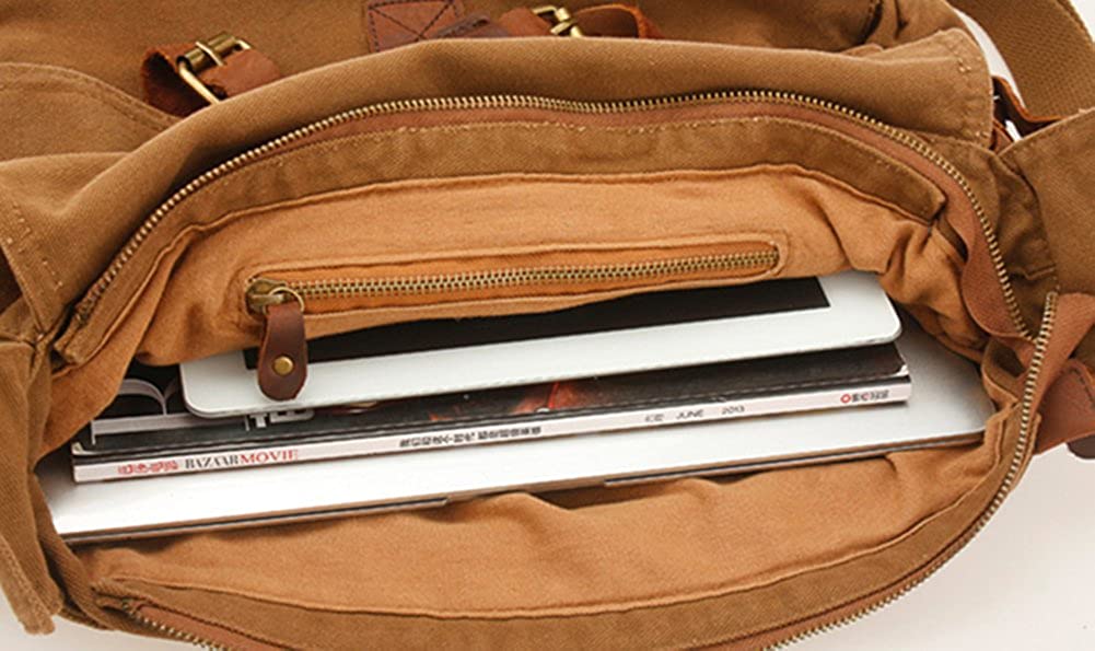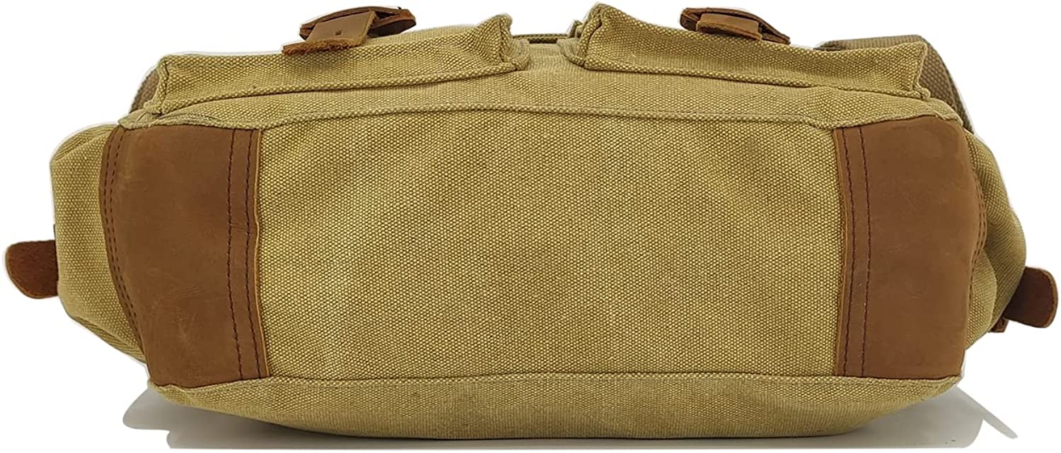 Sechunk Vintage Military Leather Canvas Laptop Bag Messenger Bags Medium