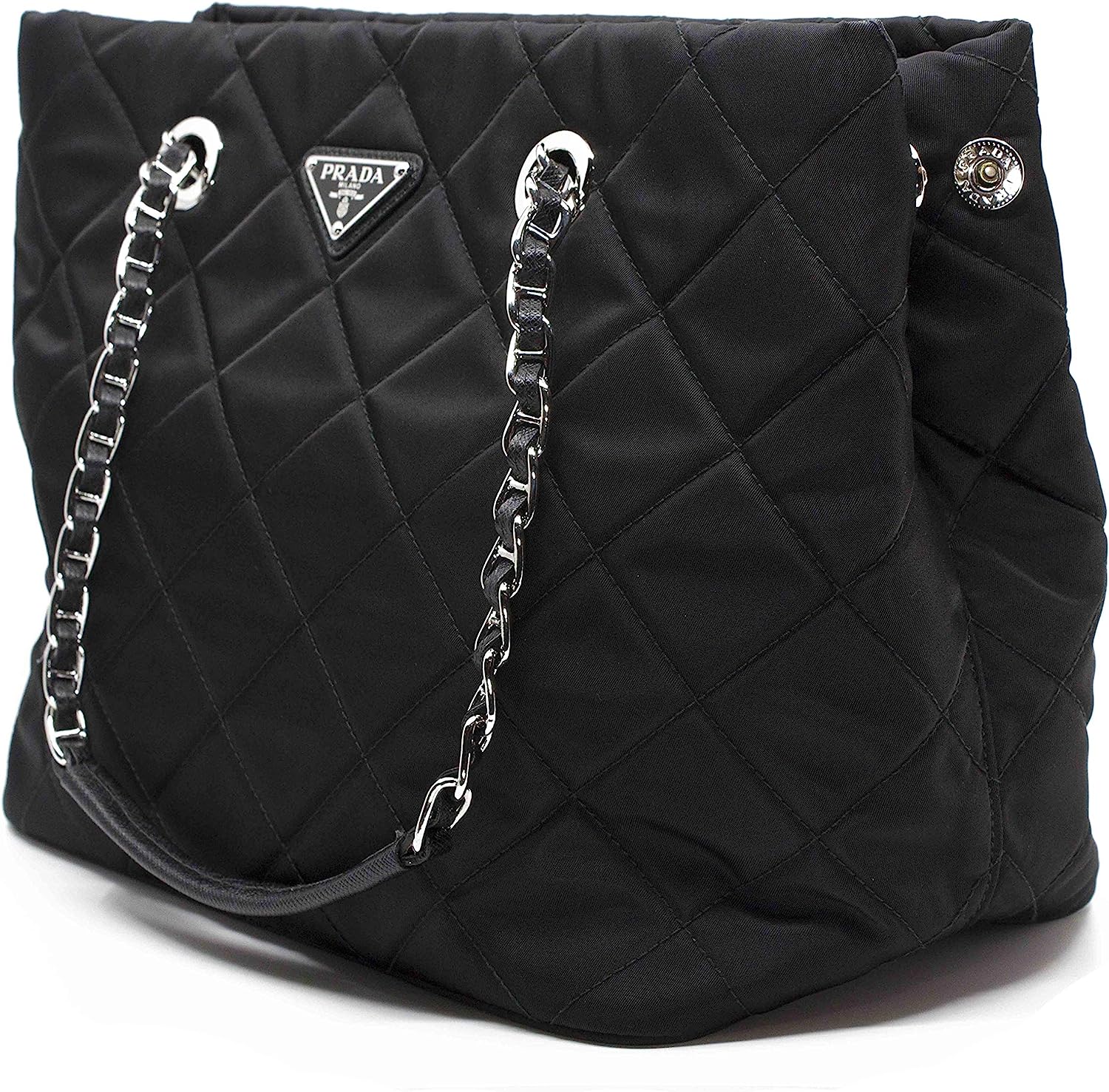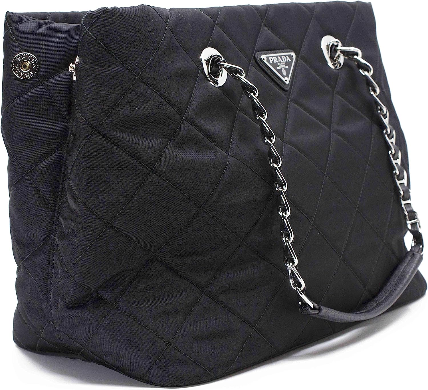 Prada Midnight Black Quilted Tessuto Chain Designer Shoulder Tote Bag for Women 1BG740