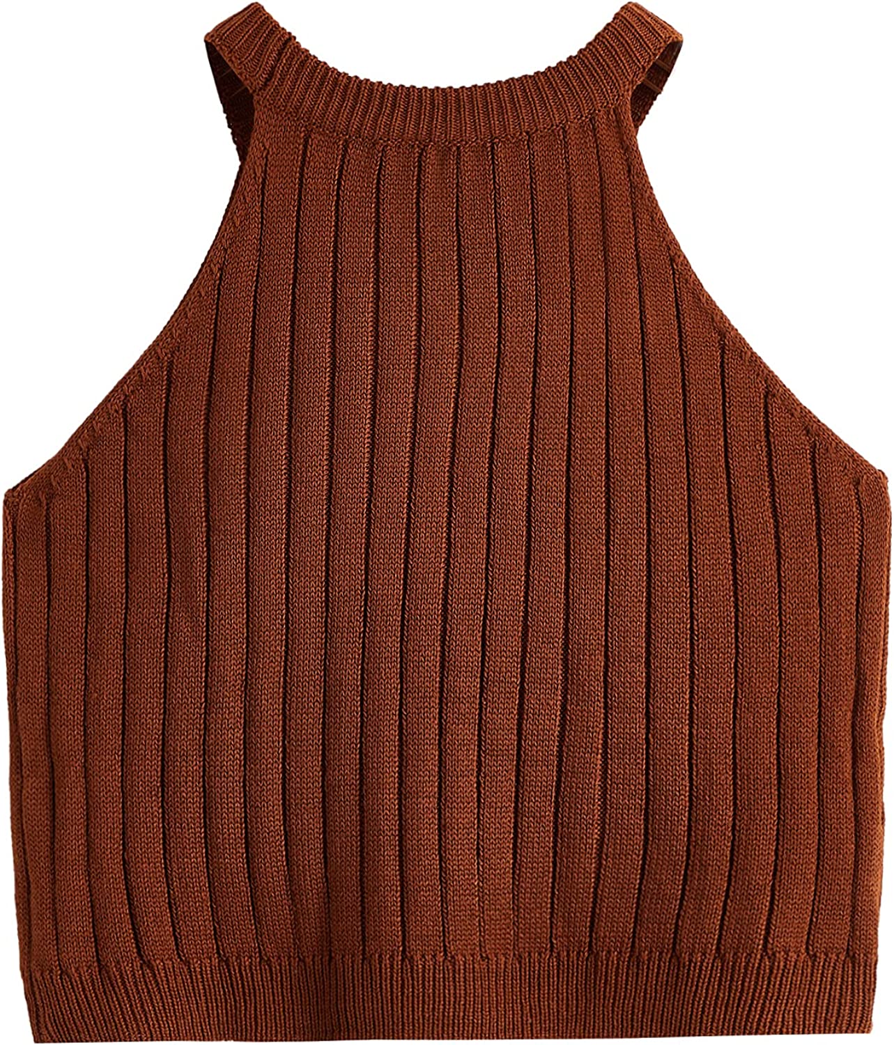 Halter knit top for women , womens basic sweater, featuring with sleeveless, high neck/halter neck and ribbed design.