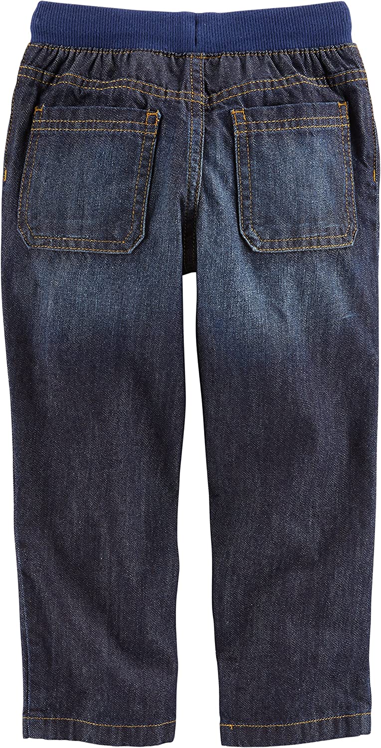 2-pack pull on lightweight denim pants with covered waistbands and functional draw cords.