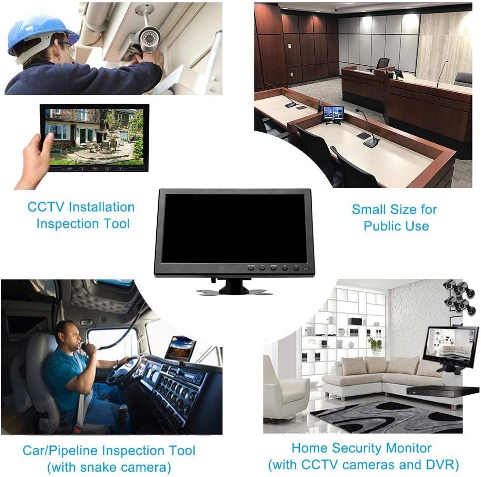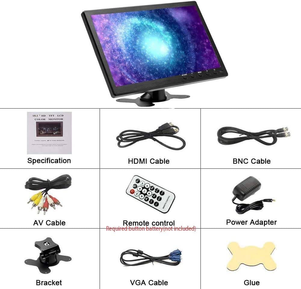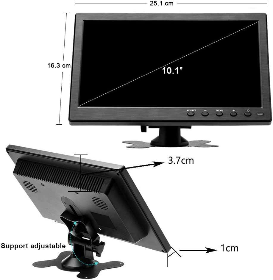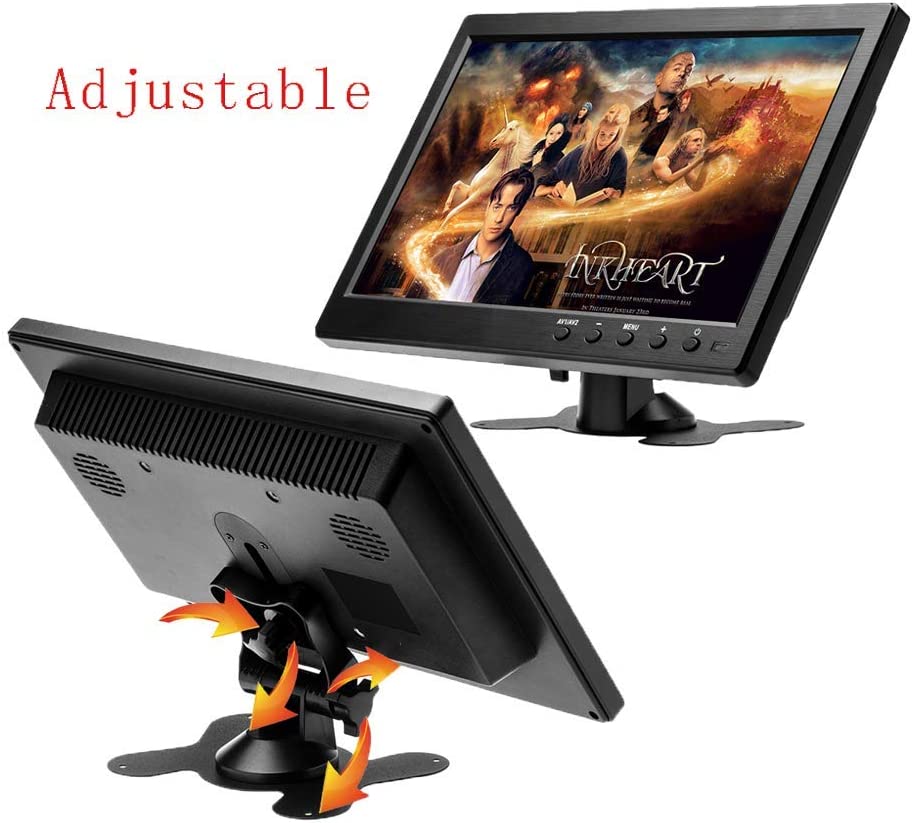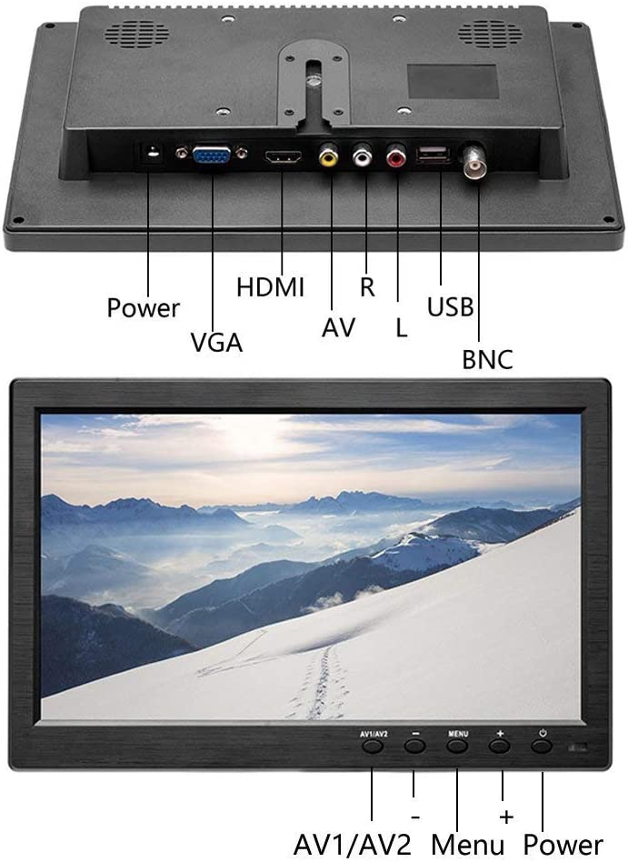 • ✔️【Portable & New Design】10.1 inch monitor is very portable and easy to use. The small monitor that sports a four-sided slim bezel design. Its IPS panel has a full-HD 1024*600 resolution, aspect ratio 16:9. With NTSC / PAL video color system. Brightness and Contrast can be adjust, you will get much richer colors and clear viewing angles that are near horizontal