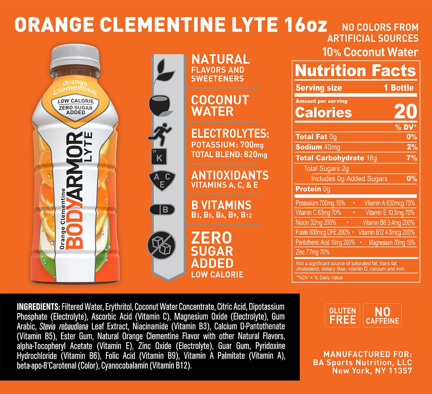 BODYARMOR LYTE Sports Drink Low-Calorie Sports Beverage, Orange Clementine - Orange Citrus, Natural Flavors With Vitamins, Potassium-Packed Electrolytes, Perfect For Athletes, 16 Fl Oz (Pack of 12)
