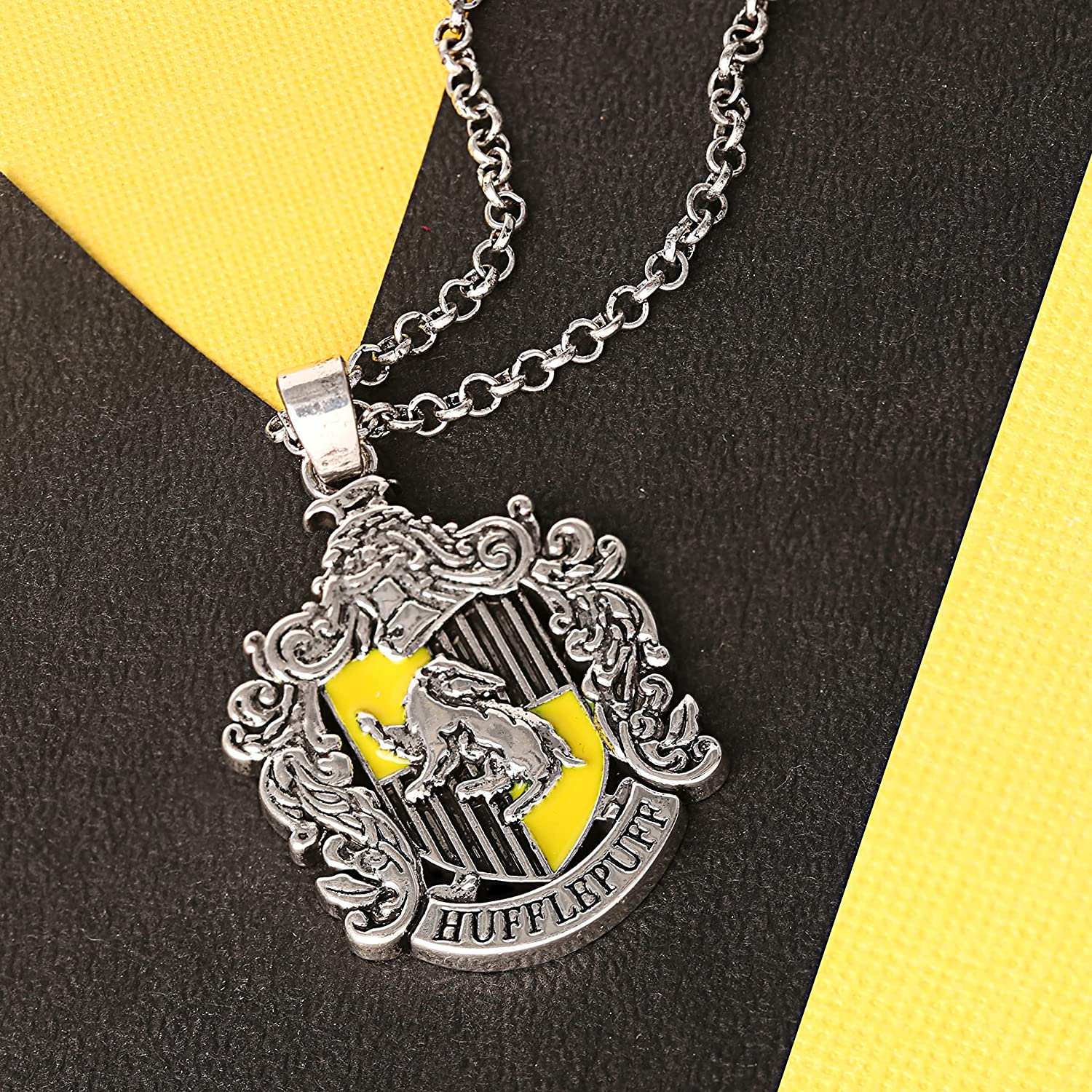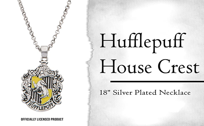 • Officially Licensed Harry Potter Jewelry; Silver Plated Hufflepuff House Pendant Necklace