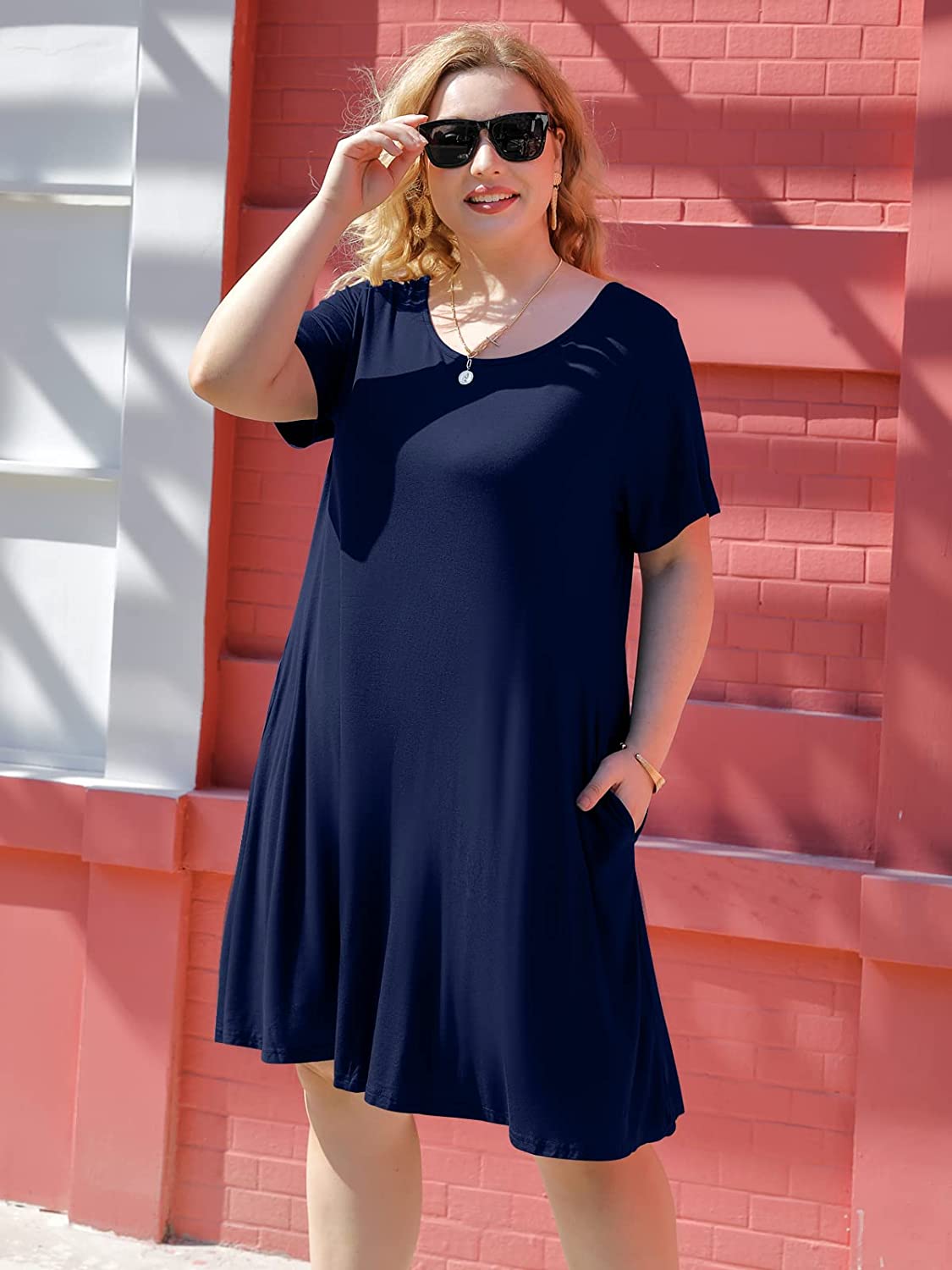 【Classic Design】Stay comfortable and stylish with JollieLovin plus size casual dresses. Featuring a scoop neck, two side pockets, A-line cut, and above-the-knee length, these dresses are perfect for any occasion. Wear them in Spring and Summer or pair them with a coat in Fall and Winter for a chic look.