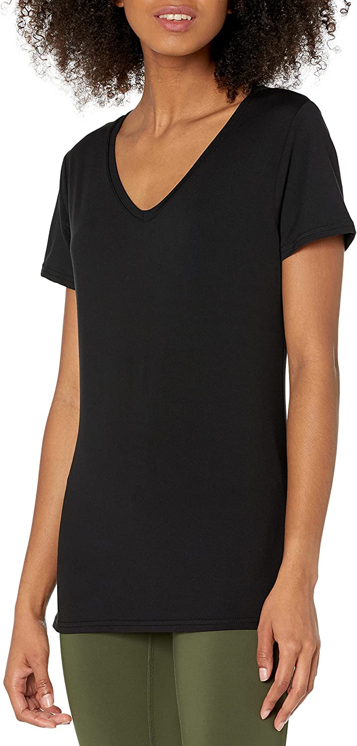Amazon Essentials Women's Tech Stretch Short-Sleeve V-Neck T-Shirt (Available in Plus Size), Multipacks