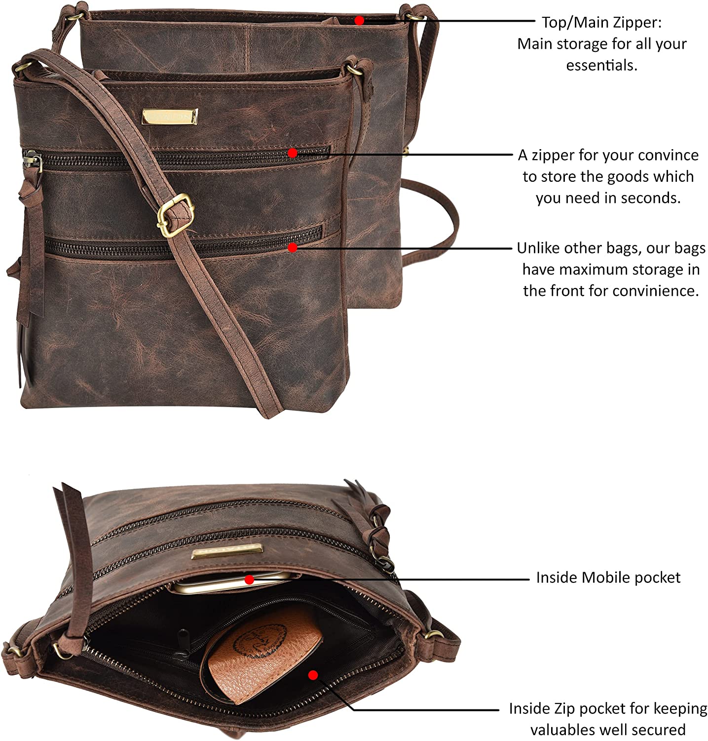 PREMIUM QUALITY: Enjoy the perfect mix of durability, softness, and utility with our women’s crossbody leather bag. Made with real leather, each stitching on the satchel is sewed with special care by professional artisans to make it timeless, lightweight, and fashionable. Every bag goes through a series of quality checks to ensure the best quality is delivered to you. The casual-cool over the shoulder look of this luxury purse brings a stylish and vintage flair to all your looks.