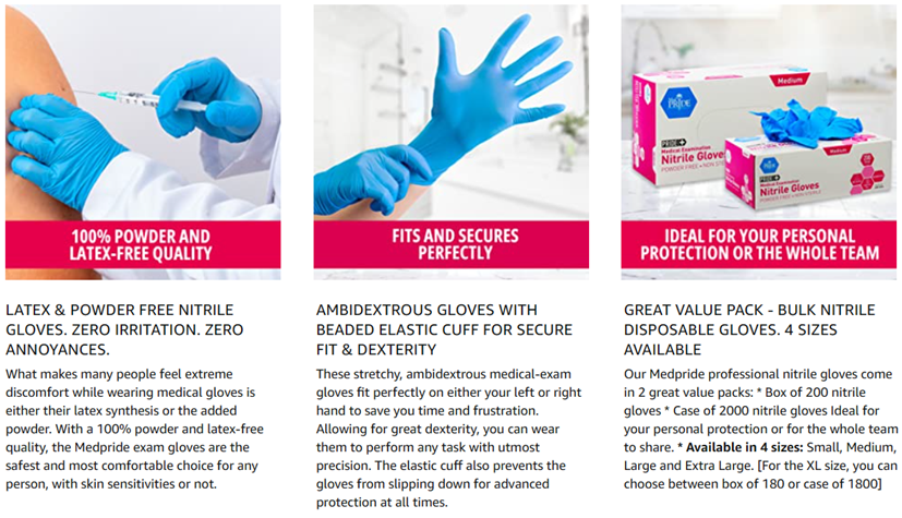 - HEAVY DUTY STRENGTH: Created with medical grade synthetic rubber, the Medpride disposable gloves offer higher puncture resistance, are highly stretchable and mighty durable as they feature a beaded handcuff design.