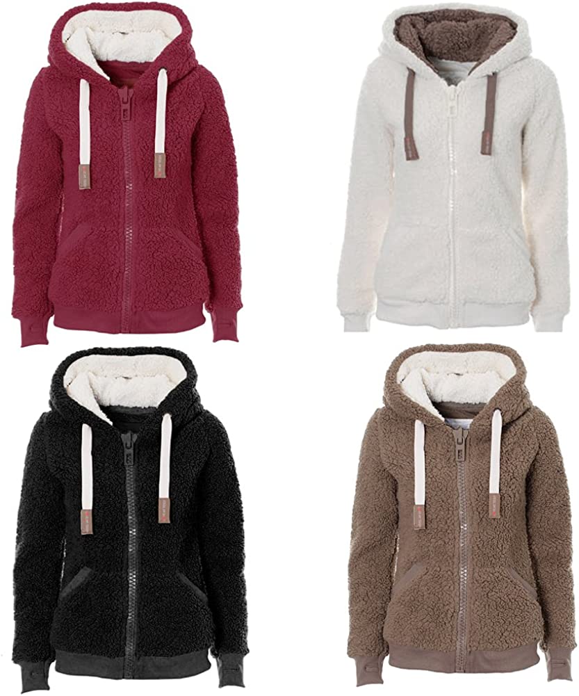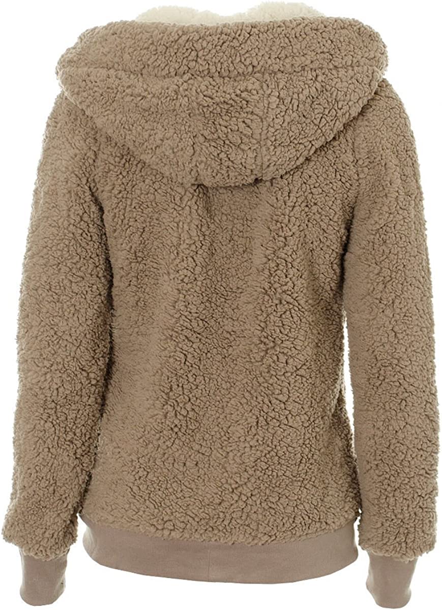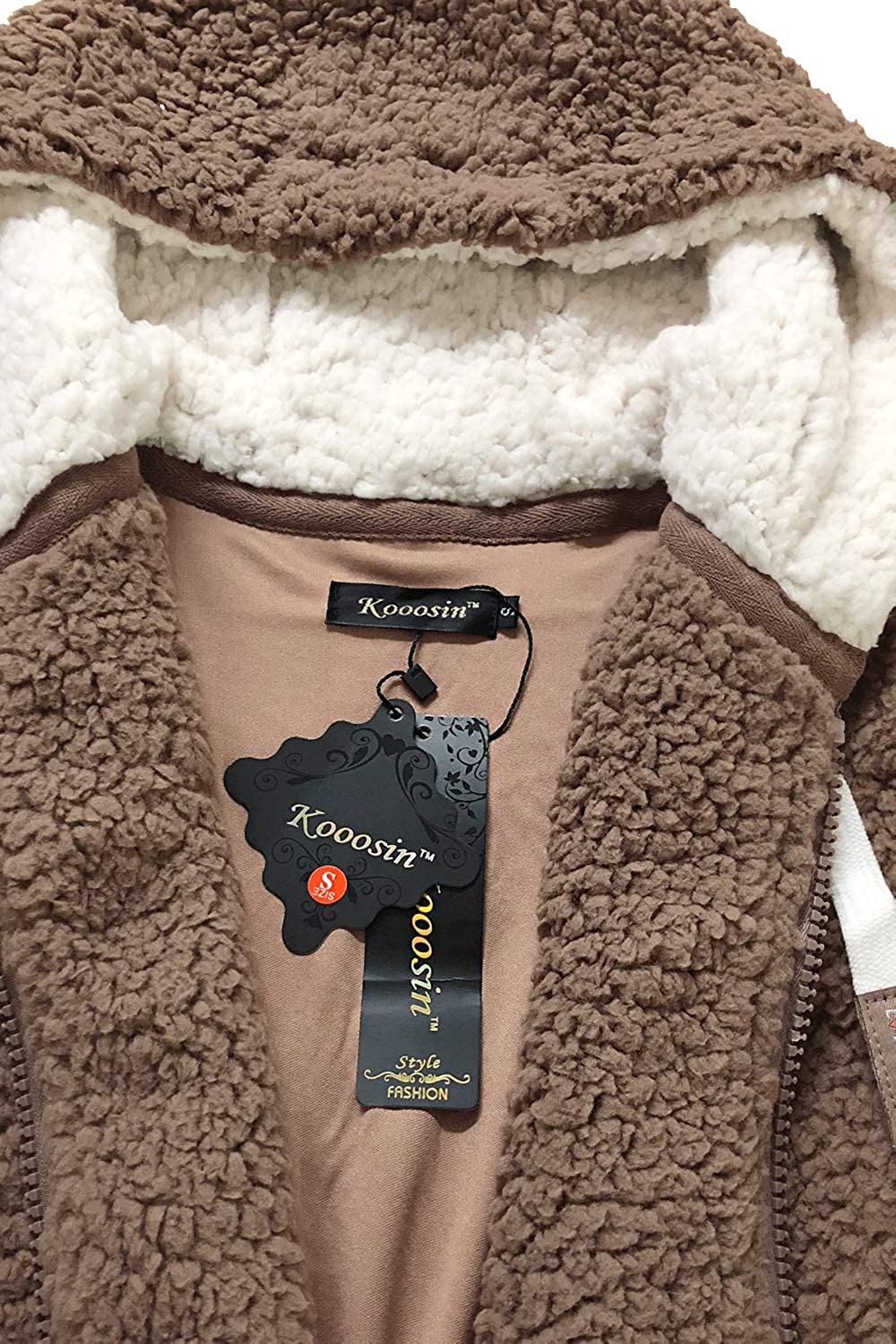 kooosin Women's New hooded sherpa jacket women Casual Winter Warm Soft Teddy Coat Zip Up Hooded Sweatshirt Jacket Coat