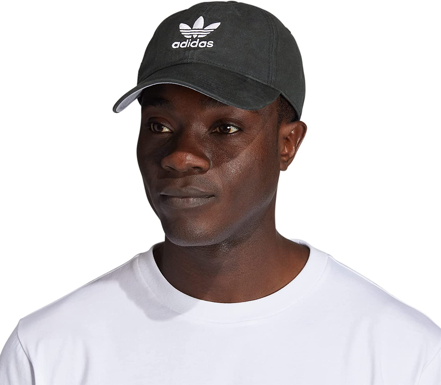 Cotton twill and a curved brim gives this cap an easy, casual vibe. the six-panel hat flashes trefoil embroidery in front, and an adjustable slider in back provides a just-right fit.