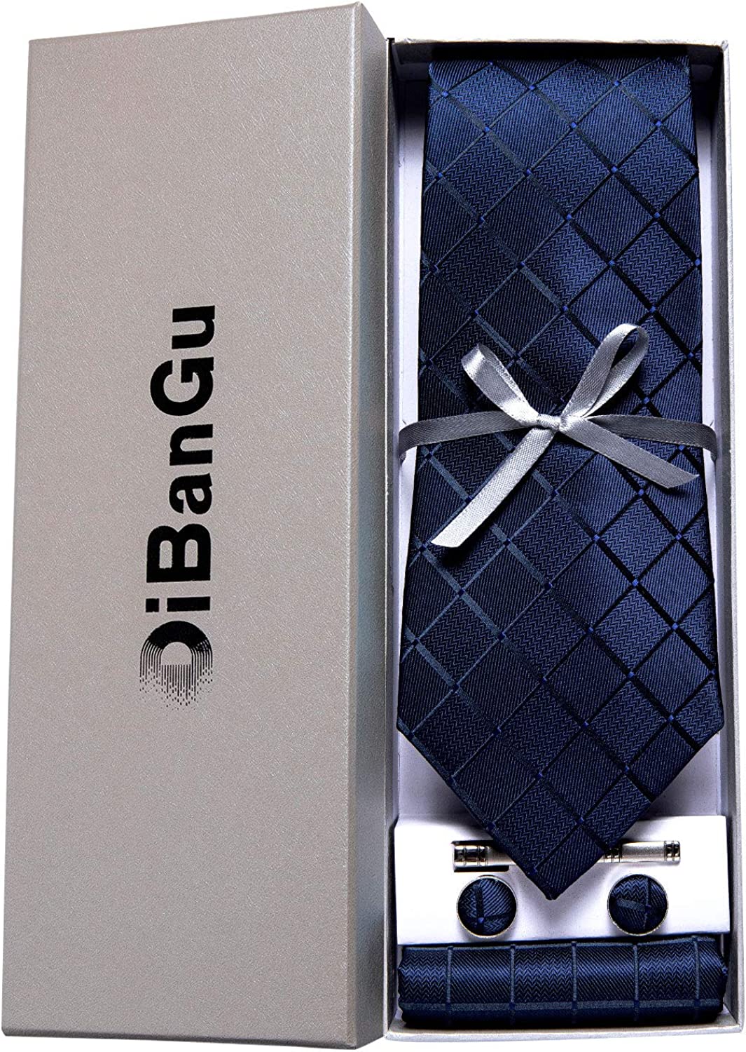 DiBanGu Plaid Tie Men's Silk Tie and Pocket Square Cufflinks Tie Clip Set Wedding Business