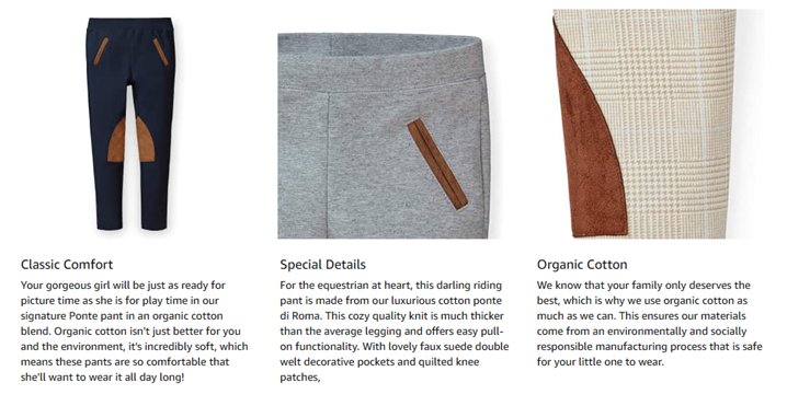 62% Organic Cotton, 32% Polyester, 4% Spandex, exclusive of trims.