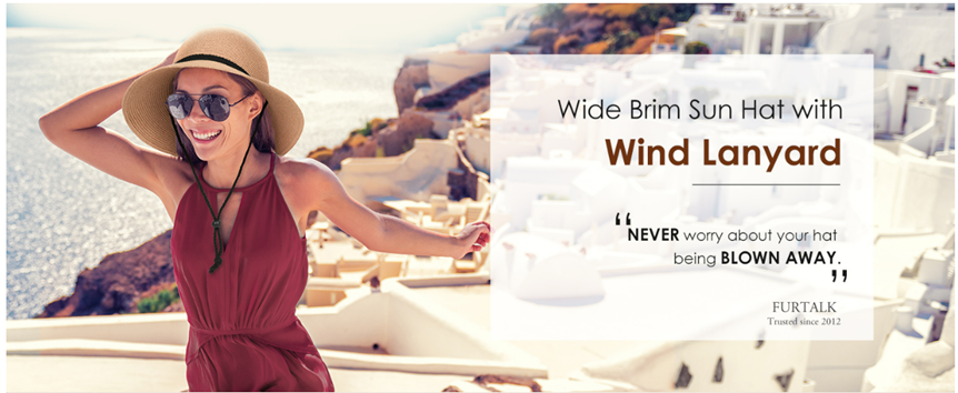 Summer hat with Wind Lanyard: Adjustable chin strap cord holds hat in place, even on windy days. It flips up over the top out of the way when you don’t need it