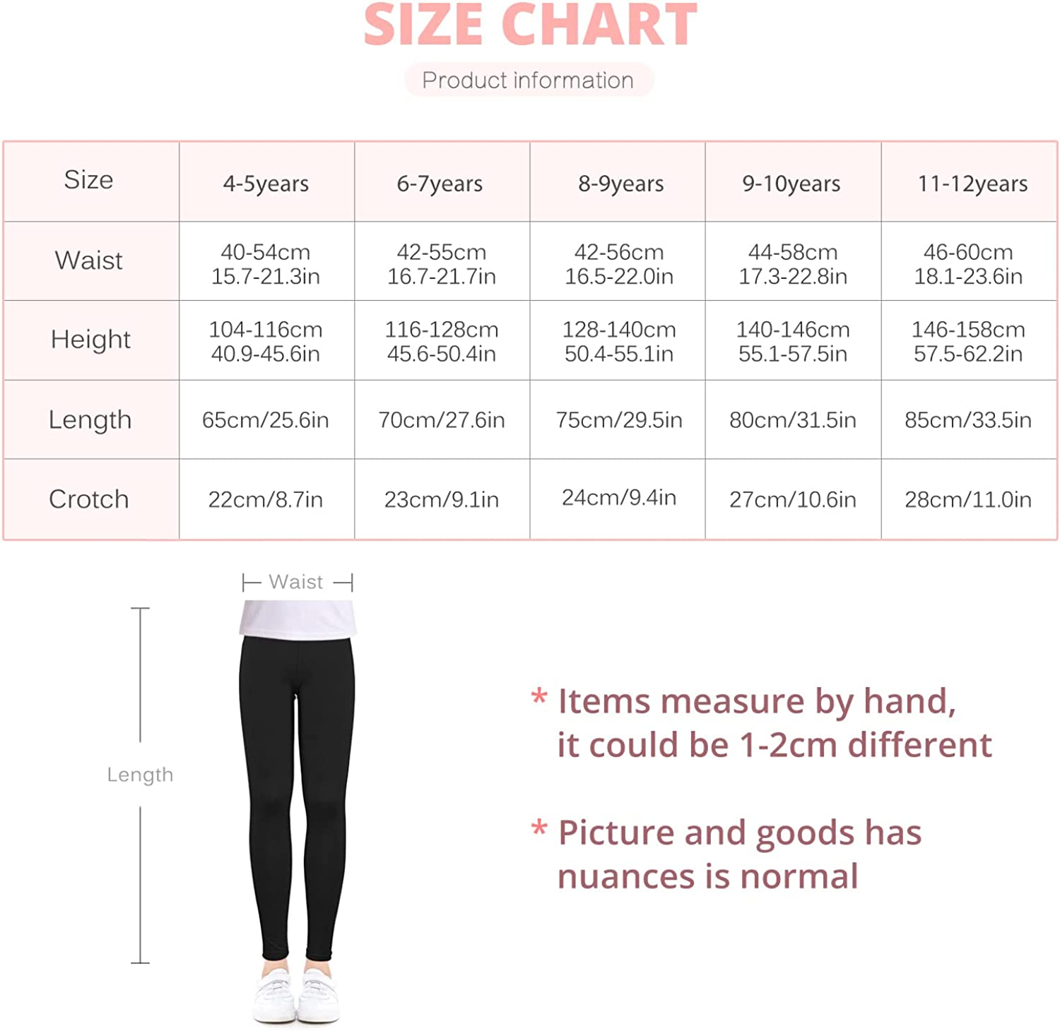 • 【RECOMMENDED SIZE】: These girls' leggings are available in ages 4-12, so you can easily choose the girl leggings that fit your child, (Size 4-5T,Size 6-7 Years,Size 8-9 Years,Size 10-11 Years, Size12-13 Years) girls active leggings:The designs are super cute and the style is trend and fashionable. which makes your kids stand out among peers.