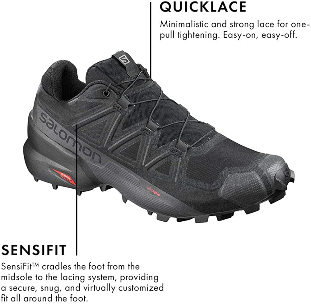 Trail Running Shoes: Featuring an aggressive grip, precise foothold, and protection, the Salomon Speedcross 5 is the ideal shoe for runners who want to conquer soft, technical trails