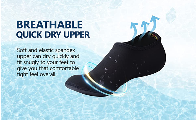 Easy on and off: Aqua socks often feature a slip-on or quick-lace design, making them easy to put on and take off.