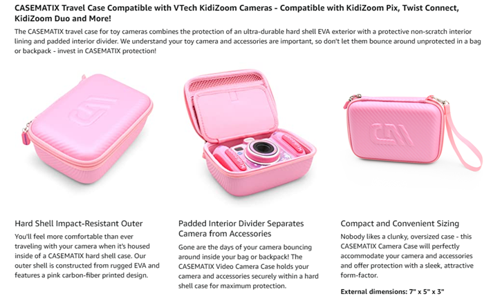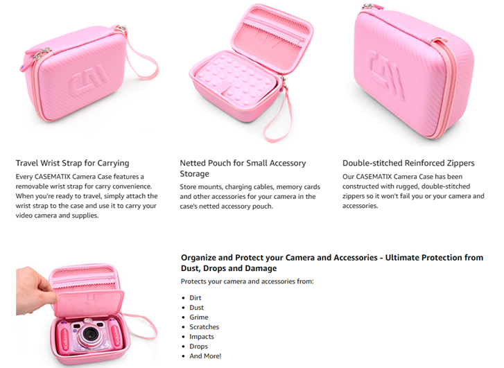 • Protective Hard Shell Outer: The CASEMATIX Pink Toy Camera Case features a protective EVA exterior and fits multiple popular toy cameras!