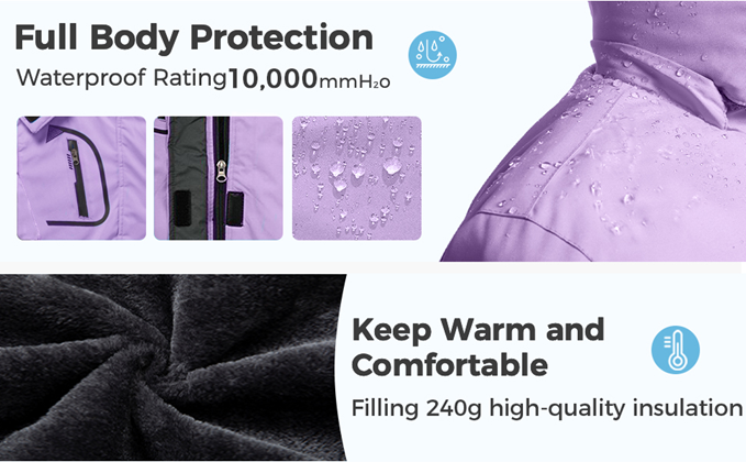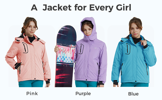 Keep Waterproof but Dry - With a 10000mm waterproof repellent coating, this kid girls' winter coats is great for keeping your child dry during skiing or snowboarding. Plus, the windproof skirt on the girls' skiing jacket works to keep snow, snowflakes, and cold air from getting inside the jacket.