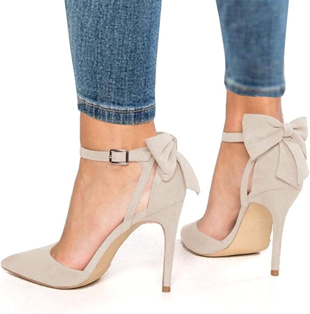 Fashare Womens High Heels Bow Tie Back Sexy Stiletto Ankle Strap Wedding Dress Pumps Shoes