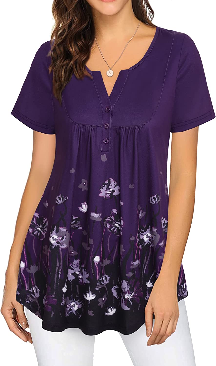 Features: Henley v neck,Button-up,Paisley pattern or solid color, cute front ruffle and flowy hem can perfectly modify the belly, good length can cover hips and easy to pair with leggings, pants and shorts etc, very casual, soft, lightweight and comfortable
