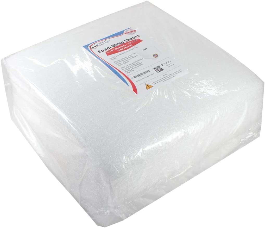 You will receive 100 sheets of Mighty Gadget brand package cushioning foam sheets moving and storage supplies - Dimensions: 12x12 inch with 1/16 inch thickness. Buy them once and they can be reused over and over again. 12 x 12 x 1/16" thickness