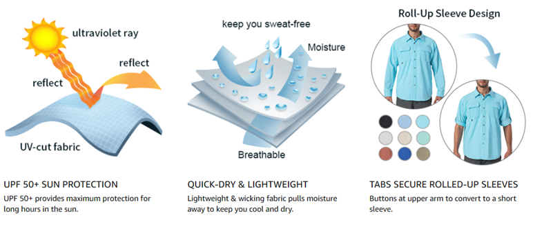 - This sun protection shirt features wicking fabric, UPF 50, back vents, and a lightweight feel to keep you cool and comfortable on any outdoor activities. More than classic shirts, we add Modern Classic fit elements, these shirts also take a heritage outdoor look and elevate it for the city or trail.