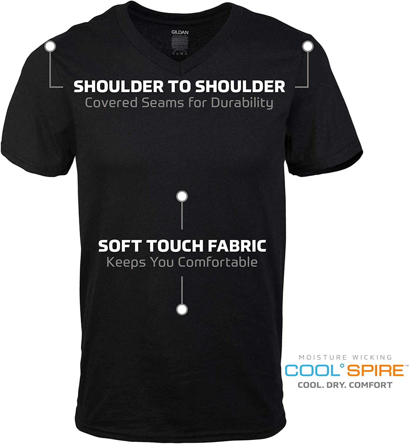 Gildan v-neck t-shirts are the ultimate in comfort. Cool Spire moisture wicking keep you cool and dry while the soft touch yarn and tag-free neck feels great all day long. These tees are built to last with durable tubular collar design and covered shoulder seams. The Gildan t-shirt will soon be your favorite...if it isn't already.