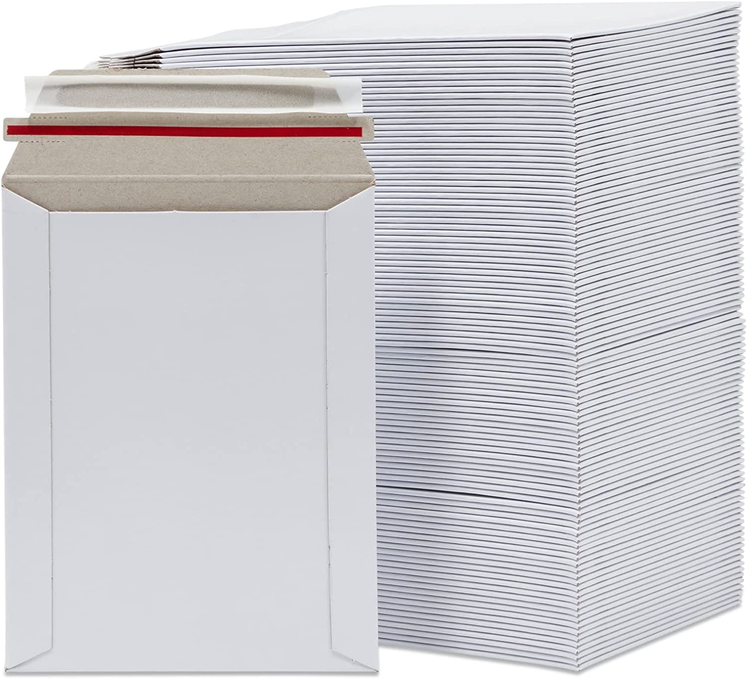 100 Pack Stay Flat Rigid Mailers 6x8 with Self Adhesive Seal, Bulk White Cardboard Envelopes for Shipping Photo, Documents, Collectible Trading Cards, Art Prints