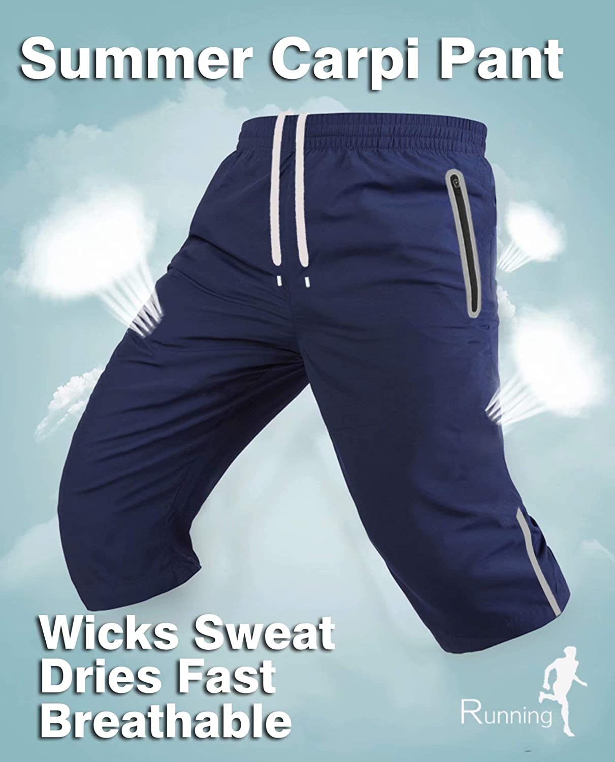 MAGCOMSEN Men's Quick Dry 3/4 Capri Pants Zipper Pockets Hiking Running Long Shorts