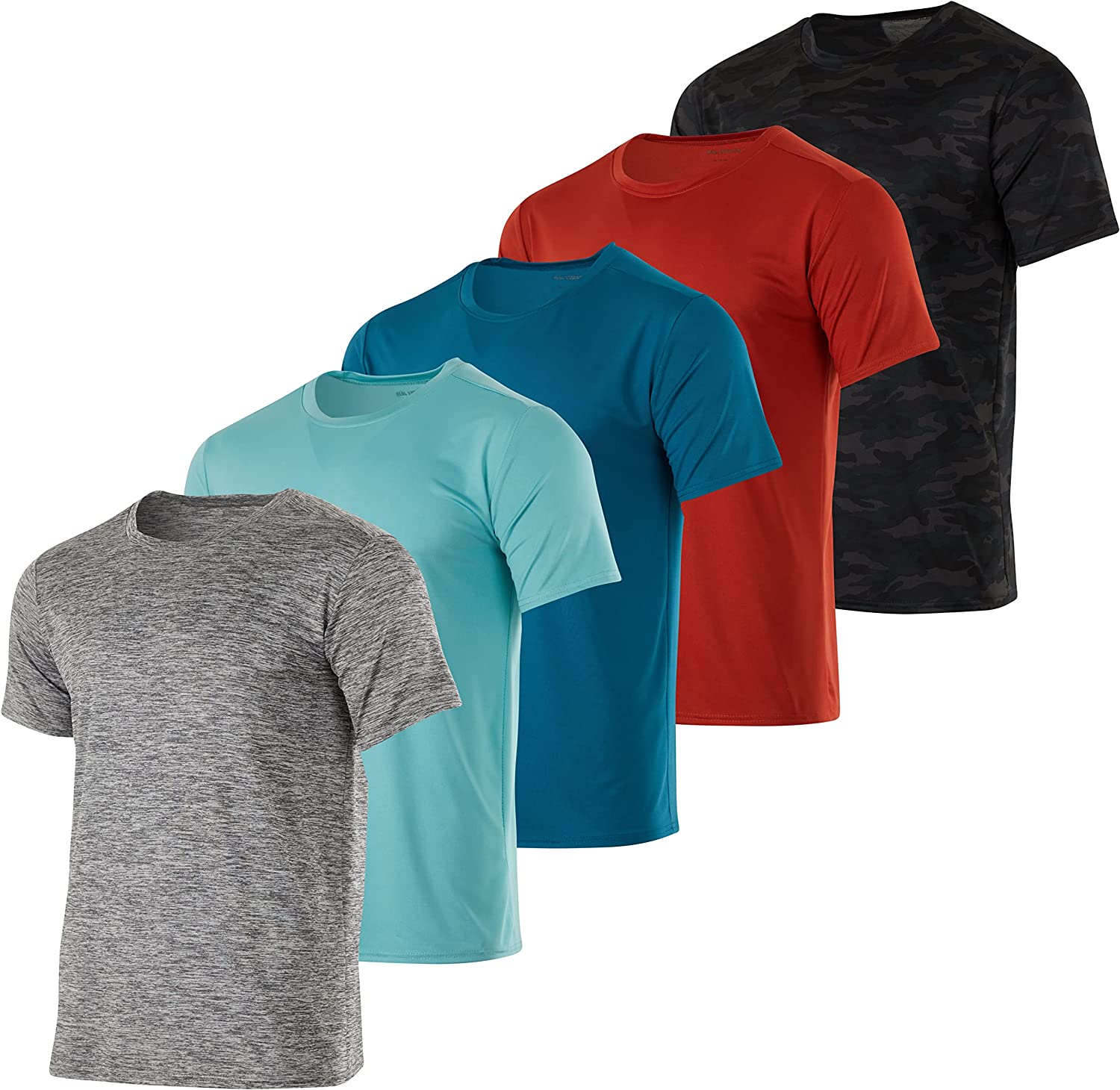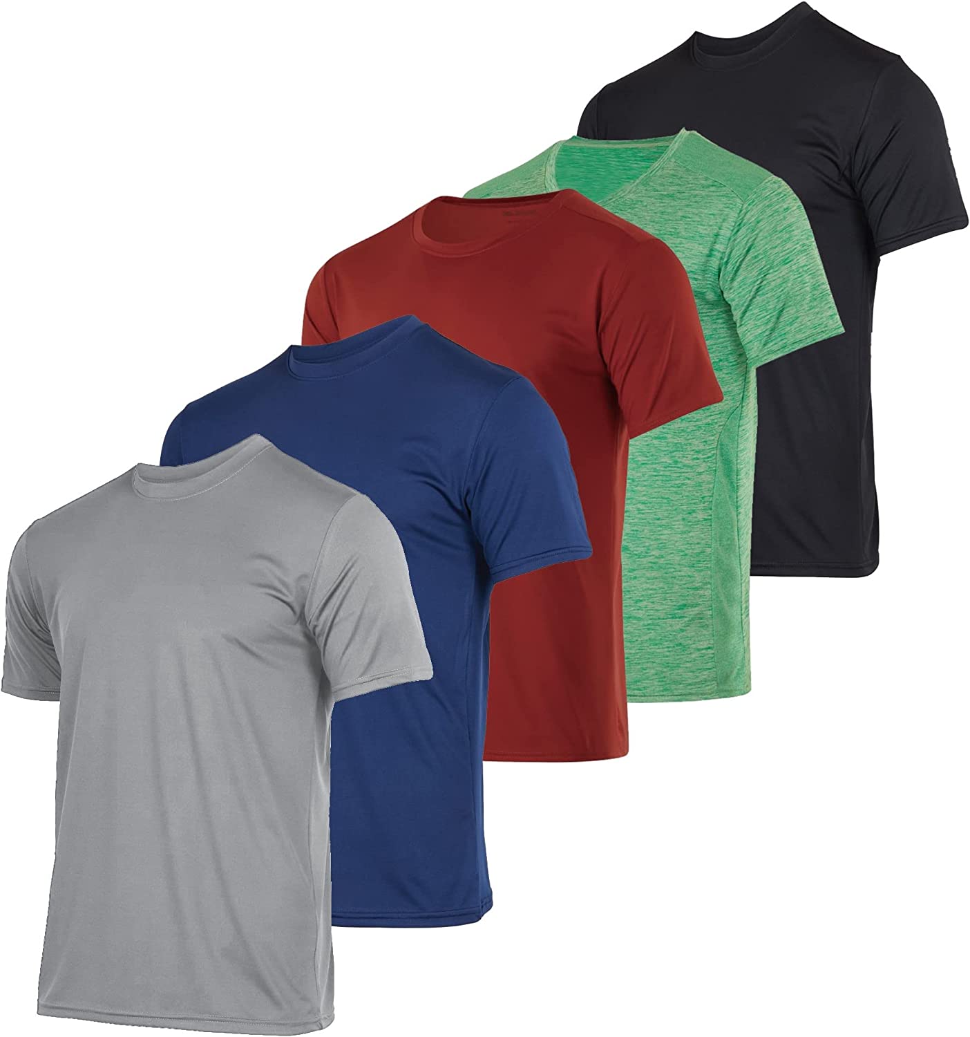 5 Pack Men’s Active Quick Dry Crew Neck T Shirts | Athletic Running Gym Workout Short Sleeve Tee Tops Bulk