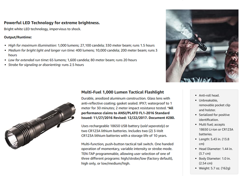 | Included Components | ProTac HL-X, Batteries, Holster, User Guide |