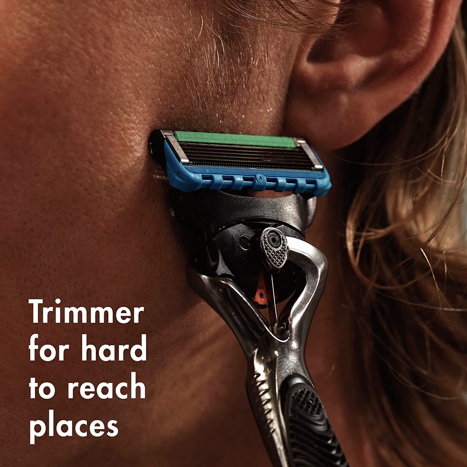 The Gillette ProGlide men's razor with FlexBall technology responds to your contours giving you uncompromising closeness and comfort. The handle’s FlexBall technology responds to contours and the blade refill features 5 antifriction blades for a shave you can barely feel. The blades are spaced closely together for incredible comfort with a precision trimmer on the back for hard to reach places and for styling your facial hair just the way you want it. The enhanced lubrastrip (vs. Fusion5) has more lubricants for comfort and glide. This enhanced lubrastrip also fades when you are no longer getting an optimal shave. Soft microfins gently stretch and smooth your skin to prepare hairs for a close shave while a microcomb helps guide your hair for a close shave from our thinnest blades. The ProGlide razor for men features our sharpest blades (first 4 blades) which help get virtually every hair effortlessly. One razor blade refill lasts up to one month of shaves. All ProGlide blade refills can fit all Gillette 5 blade razor handles (excluding GilletteLabs).