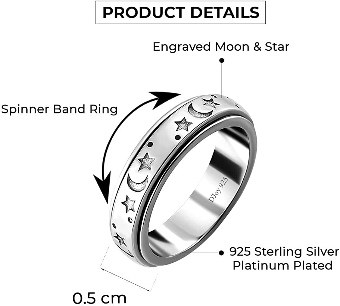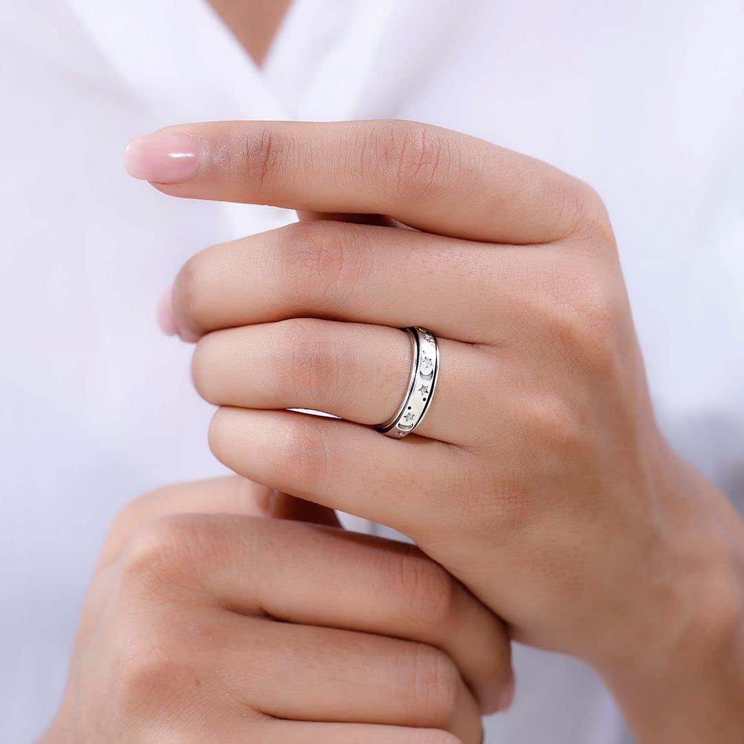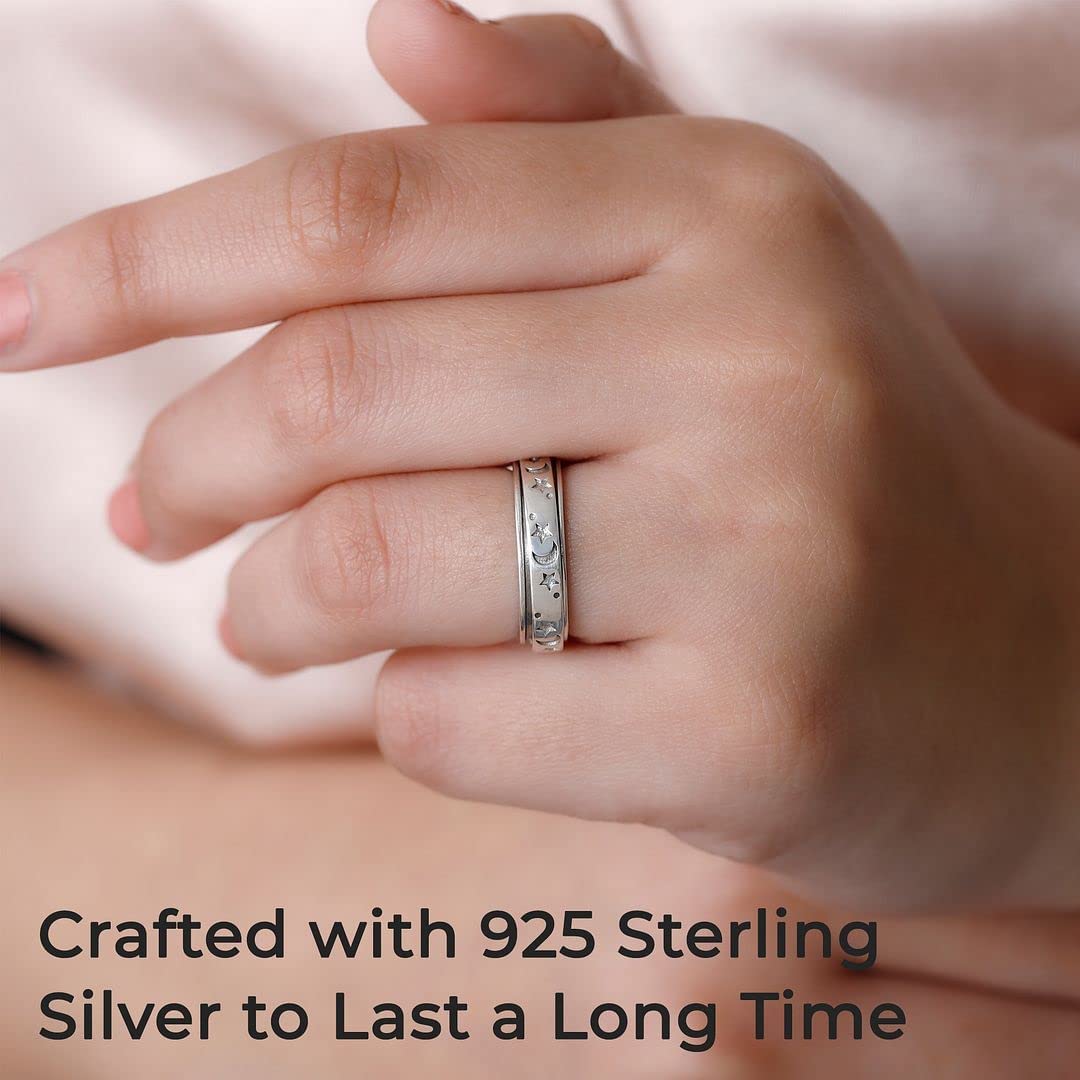Shop LC Moon Star Spinner Fidget Ring for Women - Spinning Anxiety Rings for Men - Wedding Band 925 Sterling Silver Rings Platinum Plated Statement Jewelry Stress Relief Mothers Day Gifts
