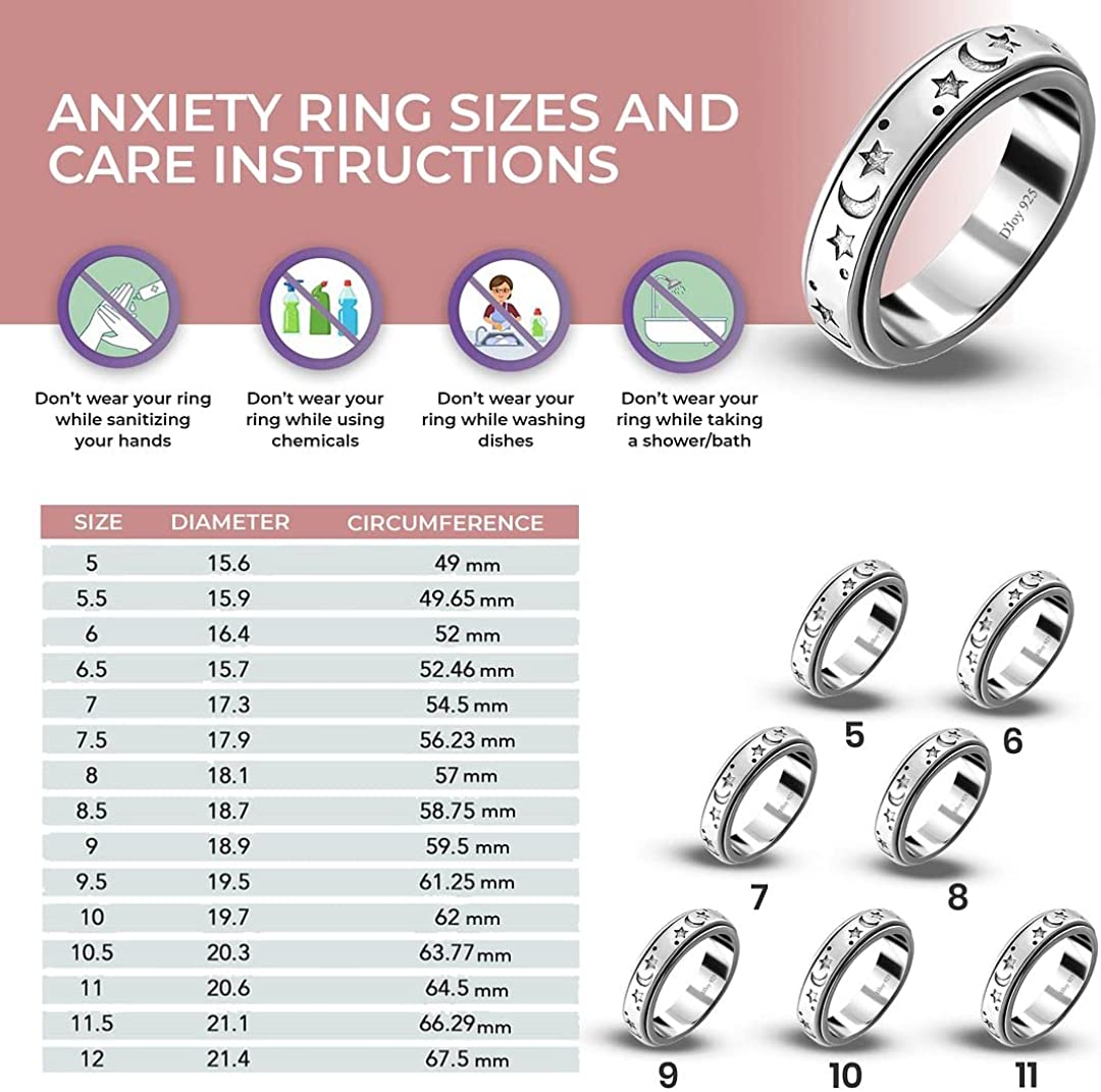 • Stress Reliever Anxiety Ring - This spinner ring is made out of pure 925 sterling silver with platinum plating which makes it tarnish , nickle & lead free, perfect for all skin types. Fashion vintage cool universe theme perfect for your daily activities. The trendy anxiety spinner ring is perfect to get you through stress, and anxiety and enhance your mood.