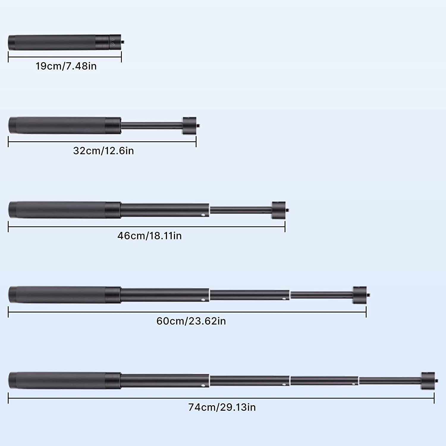 • ✔[Adjustable Extension] - Telescopic length from 7.4inch/19cm to 28.8inch/74cm. We need to twist at each length to lock and unlock.