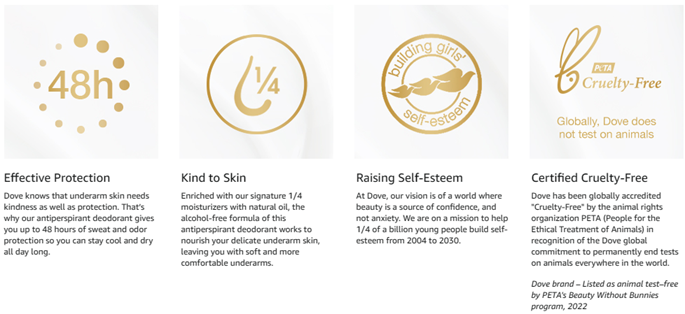 • CERTIFIED CRUELTYFREE: Globally Dove does not test on animals including for deodorants and is Certified Cruelty Free by PETA.